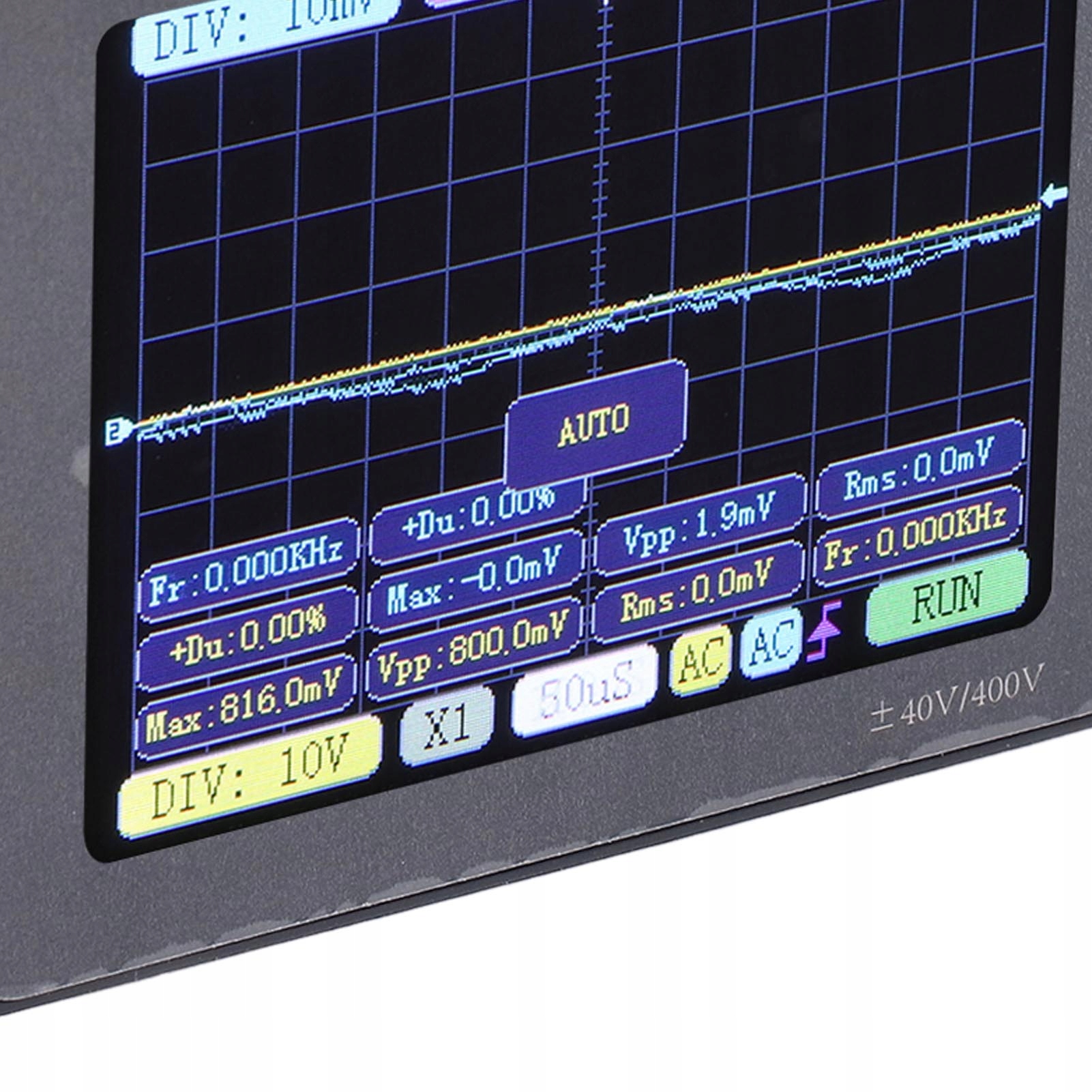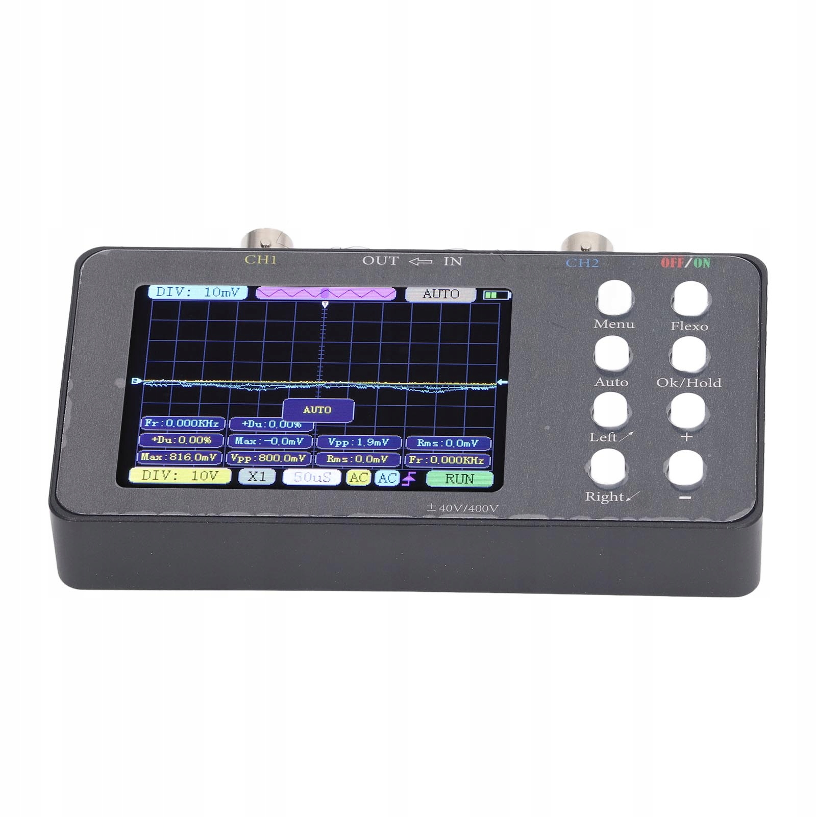 2. Широкий діапазон вимірювання напруги: Завдяки максимальним можливостям вимірювання напруги ± 400 В, цей ручний цифровий осцилограф здатний обробляти широкий діапазон рівнів напруги. Від сигналів низького рівня до вимірювань високої напруги ви можете довіряти цьому пристрою, який точно фіксує та відображає пробіг без будь -яких спотворень або пошкоджень тестованої схеми. Забезпечує надійні вимірювання в різних додатках.