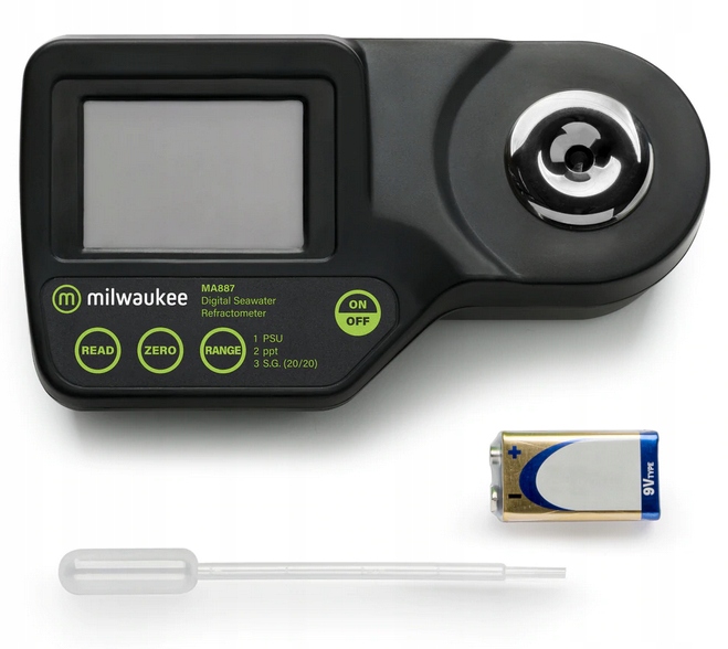 Вимірювач MA887 — це оптичний прилад, який дозволяє також вимірювати солоність природної та штучної солоної води як вода з солонуватої води. Застосування цифрового рефрактометра виключає похибки, що виникають внаслідок неправильного відліку шкали на поплавковому ареометрі або неправильного калібрування «ручного» рефрактометра. Завдяки невеликому розміру він зручний, а завдяки простоті вимірювання ідеально підходить як для домашнього, так і для польового використання.