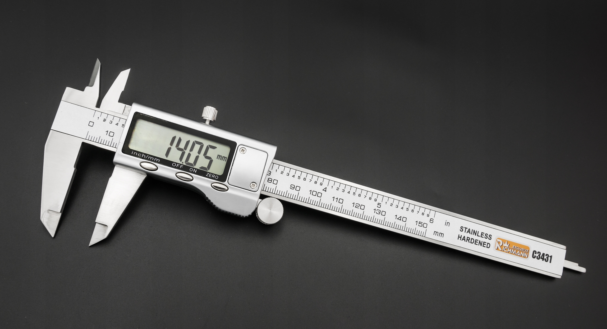 Чіткий цифровий РК-дисплей, оснащений перемикачем одиниць вимірювання з функцією обнулення в будь-якій точці. Вимірювання в діапазоні 0-150 мм з точністю ± 0,01 мм. Виготовлений із високоякісної нержавіючої сталі.