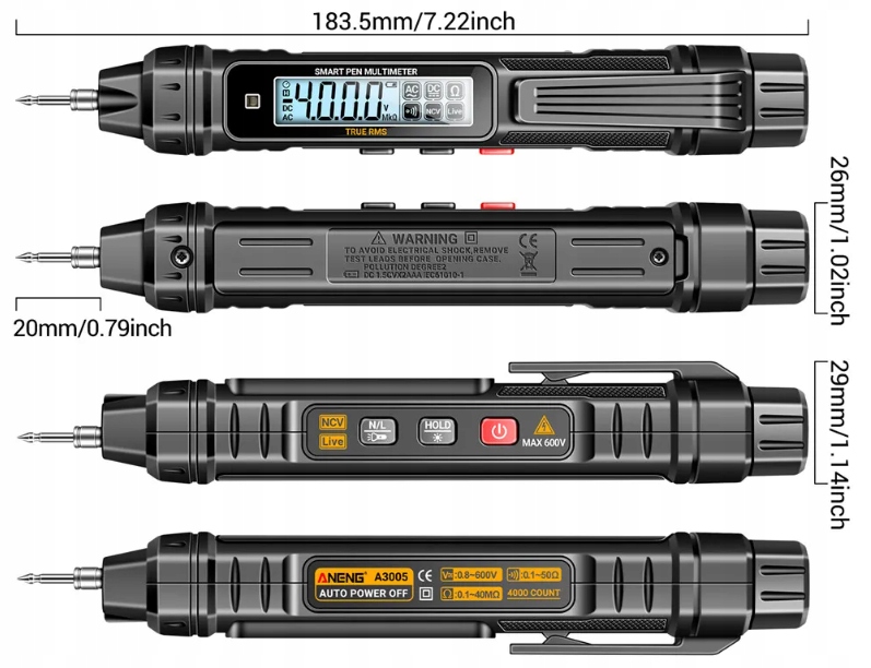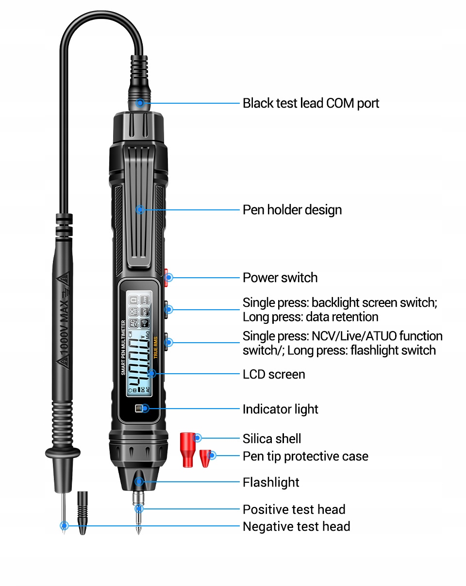Цей сучасний цифровий мультиметр виглядає як ручка. Він оснащений РК-дисплеєм з підсвічуванням.