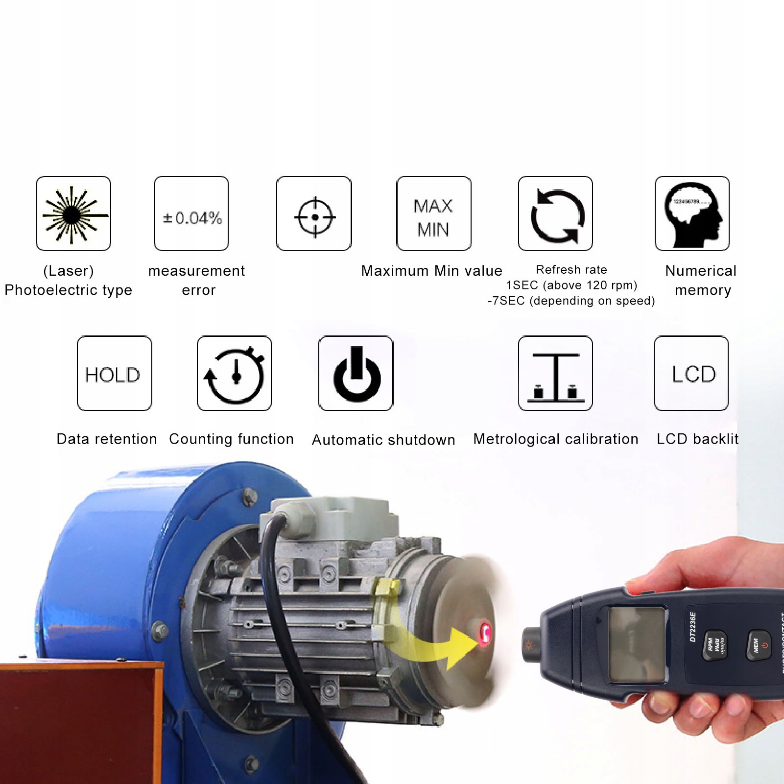 1. Розширена технологія: тахометр використовує технологію мікрокомп'ютерів (процесор), фотоелектричну технологію, технологію анти -cheap та грудова лазерна технологія, яка може перевірити швидкість безконтактного вимірювання (об / хв) або контактна швидкість вимірювання (об / хв) та поверхнева швидкість. (м/хв). Багатофункціональні: контактні аксесуари та оптоелектронні аксесуари можна замінити в будь -який час, отримуючи одну машину з багатьма функціями. Датчик швидкості з канавками може зручно виміряти швидкість або тривалість проводів, кабелів та мотузок. Зберігання даних: Автоматично економить максимальні, мінімальні та останні значення та може зберігати 96 наступних наборів даних. (Після оновлення вимірювальних даних тахометр починає пам’ятати дані.)