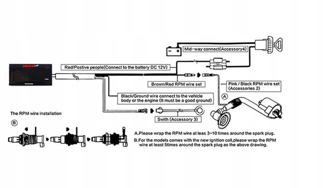 Універсальний тахометр для мотоциклів, скутерів і квадроциклів з акумуляторами 12В.