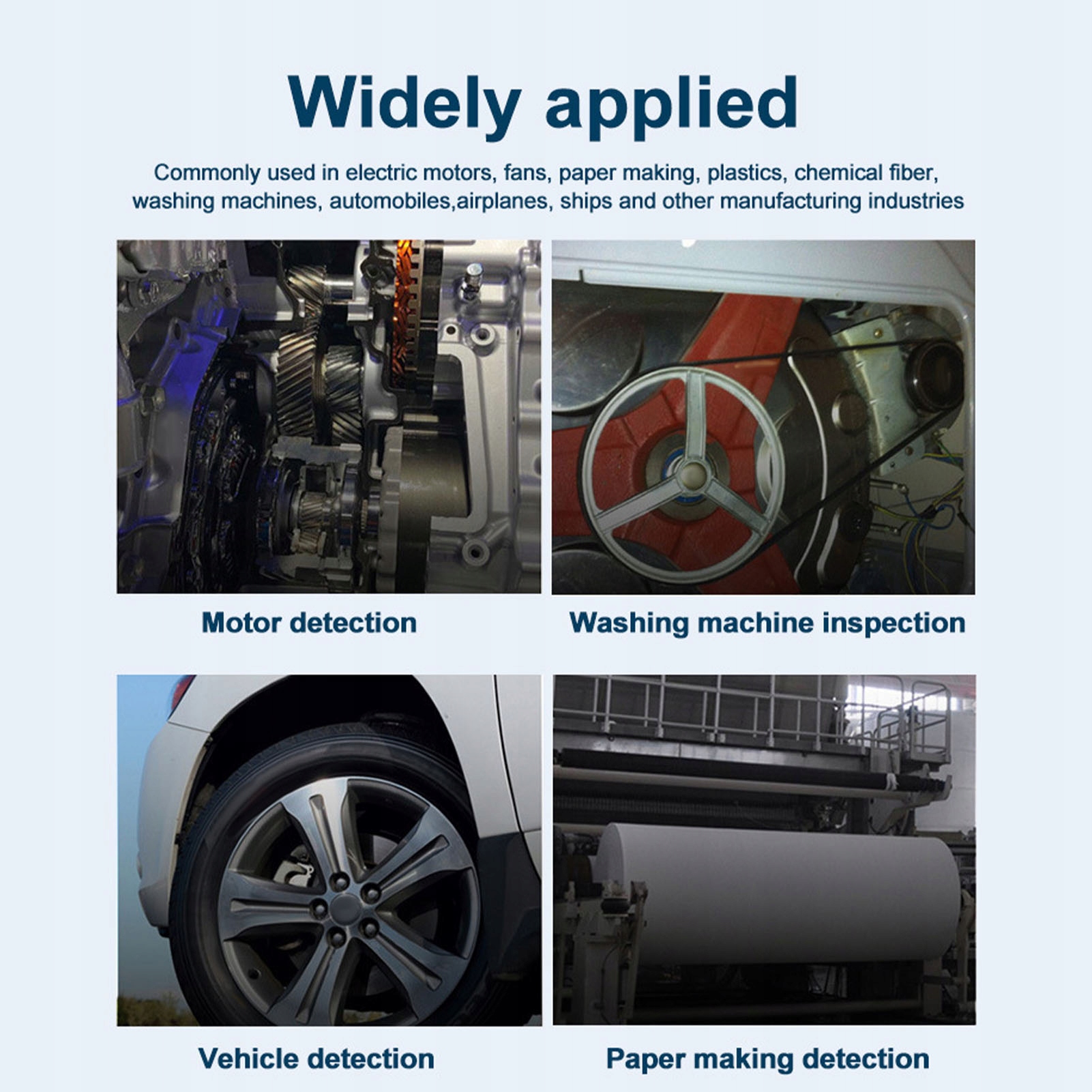 Застосування: можна використовувати для вимірювання двигунів, елементів машин, токарних верстатів тощо.