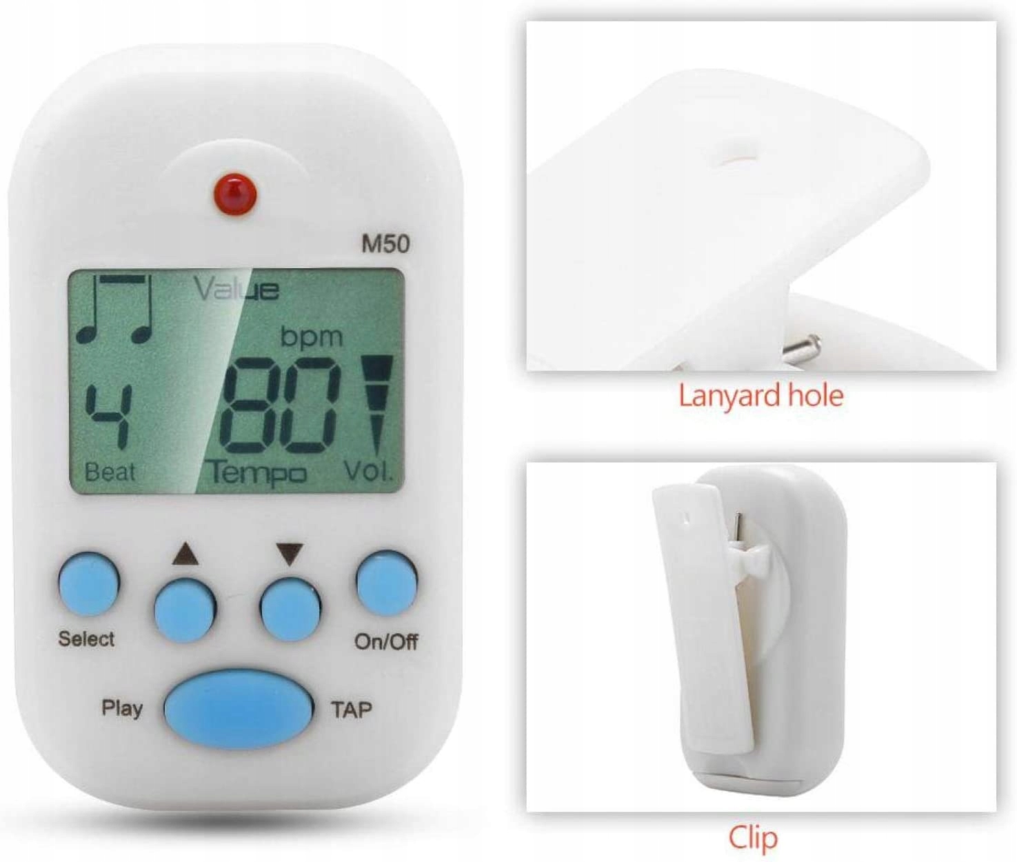 Дизайн затискача та отвору для шнурка, який легко та зручно носити та кріпити. Виріб має двоканальний вихід для навушників. Функція Tap дозволяє перевірити ідеальний темп або темп пісні. Багатофункціональний можна використовувати для всіх типів інструментів. Використовуйте цей метроном, щоб відзначати час регулярними повторюваними мітками або спалахами з регульованими інтервалами.