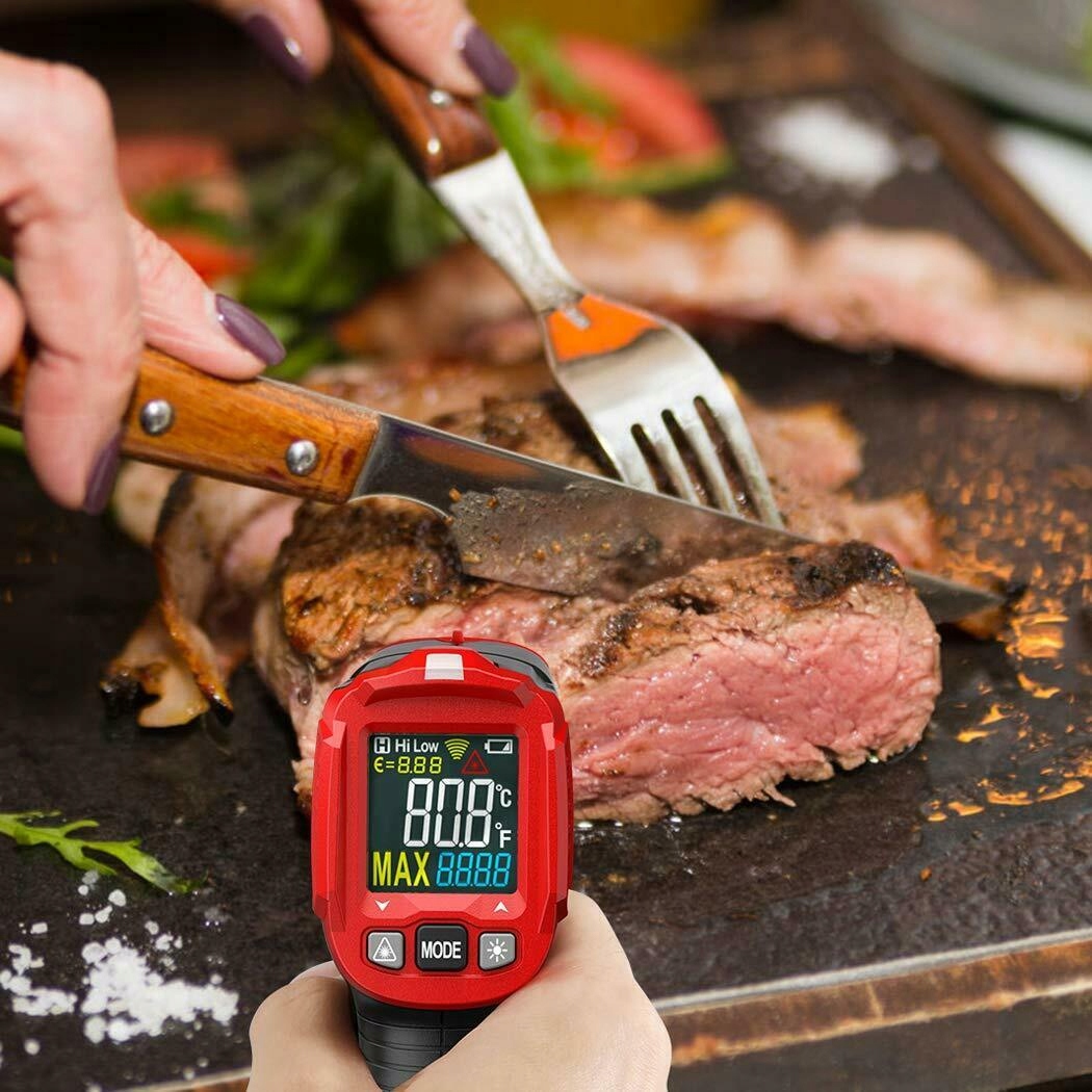 🌡️ 【Кілька застосувань】 Для безконтактного вимірювання температури поверхні. Приготування їжі, випікання, гриль, заморожування, смаження, ремонт транспортних засобів, догляд за домом, рослини, виноробство, вимірювання температури води, вимірювання температури побутової техніки, адаптери тощо.
