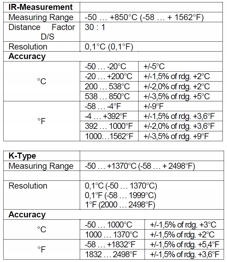 Інноваційний цифровий термометр із ІЧ-зондом для більш точних вимірювань. Можливість безконтактних вимірювань за допомогою лазерного променя. Прилад дозволяє вимірювати температуру рухомих об'єктів. Ергономічна рукоятка полегшує керування приладом, вимірюючи з точністю до десятих часток