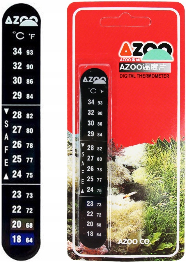 AZOO Digital Thermometer - це естетичний термометр, який наклеюється на скло акваріума. Термометр дуже чіткий, легко читається, виконаний у сучасному округлому дизайні. Висота термометра 13 см. Він одночасно показує температуру в градусах і фаренгейтах. Термометр слід приклеїти на скло, протилежне від обігрівача.