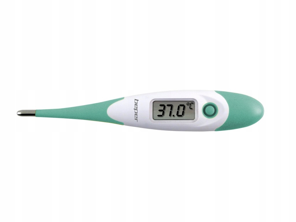 Beper 40.100 - це сучасний цифровий термометр, призначений для щоденного використання в кожному домі. Його було створено з урахуванням максимальної зручності користувача. Його гнучкий кінець і чіткий РК-дисплей роблять вимірювання температури надзвичайно простим і швидким. Крім того, прилад видає звуковий сигнал після завершення вимірювання, а також повідомляє про можливість лихоманки завдяки функції температури. Універсальність термометра забезпечує діапазон вимірювання температури від 32,0°C до 42,9°C, що робить його ідеальним інструментом для всієї родини. Прилад запам'ятовує результати останніх вимірювань, що дозволяє легко відстежувати зміни температури. Додатковою перевагою є функція автоматичного вимкнення після 10 хвилин бездіяльності, яка збільшує термін служби акумулятора.