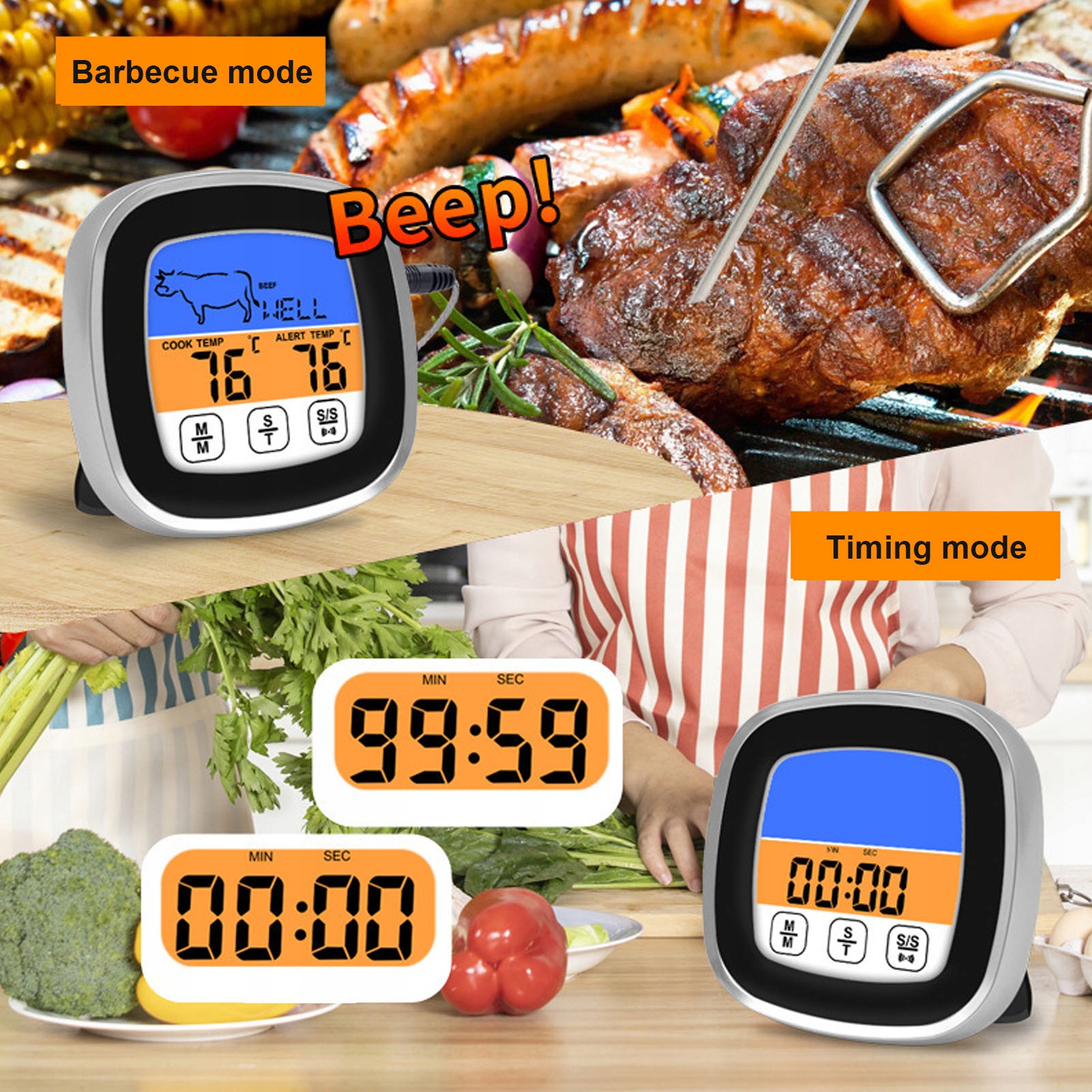 3. Застосування: наш цифровий термометр для м’яса ідеально підходить для напоїв, смаження у фритюрі, приготування цукерок, випічки, гриля тощо!
