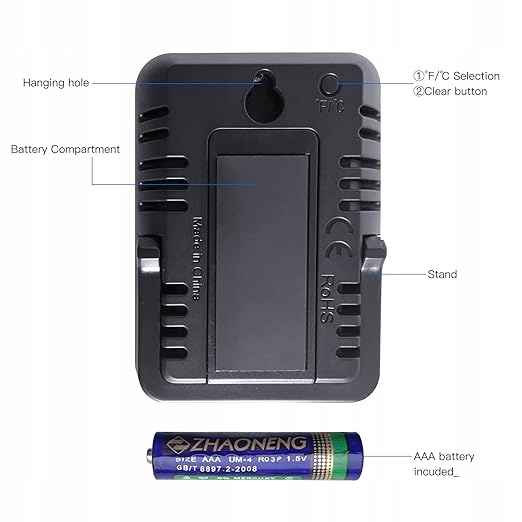 побудований -in точний та чутливий датчик термогігрометра оновлює температуру та вологість кожні 10 секунд; Діапазон вимірювання температури: -20 ~ 70 градусів Цельсія, -4 ~ 158 градусів Фаренгейт, необов'язково у Цельсія та Фаренгейті; Вологість: 10% ~ 99%.