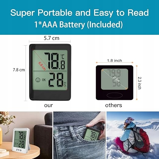 Міні -внутрішній гігрометр Zvo, доступний для встановлення на стіл, стіні та магніті. Маленький і досить легкий, щоб заощадити простір. Температура відображає ° C і ° F, можна переключити однією кнопкою, що робить операцію більш елегантною та витонченою.
