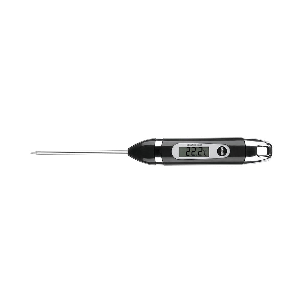 Відпочиньте, готуючи всі види м'яса на грилі. Швидкий цифровий термометр повідомить вам, коли м'ясо буде готове до споживання. Не розрізаючи м’ясо та потенційно не втрачаючи цінні соки, просто вставте сталевий стрижень у центр м’яса чи риби, і світлодіодний дисплей покаже температуру протягом 4–5 секунд у градусах Цельсія чи Фаренгейта. Очищайте ніжку лише водою з милом. Не мийте в посудомийній машині. Найкращий спосіб перевірити, чи ваша їжа приготовлена згідно з безпечними стандартами та ідеально приготовлена на ваш смак, — це використовувати точний цифровий термометр. Цифровий термометр марки Napoleon зі швидким зчитуванням ідеально підходить для використання на грилі, духовці та навіть на сковороді. Відразу перевірте, чи готова ваша страва, і не залишайте це напризволяще. Розумний, багатофункціональний і простий в обслуговуванні - кожна кухня отримує переваги від аксесуарів для гриля Napoleon. Наші аксесуари забезпечать вас необхідним для створення смачних страв на грилі, а потім збагатять ваш кулінарний арсенал широким вибором креативних доповнень, які розширять ваші кулінарні горизонти.