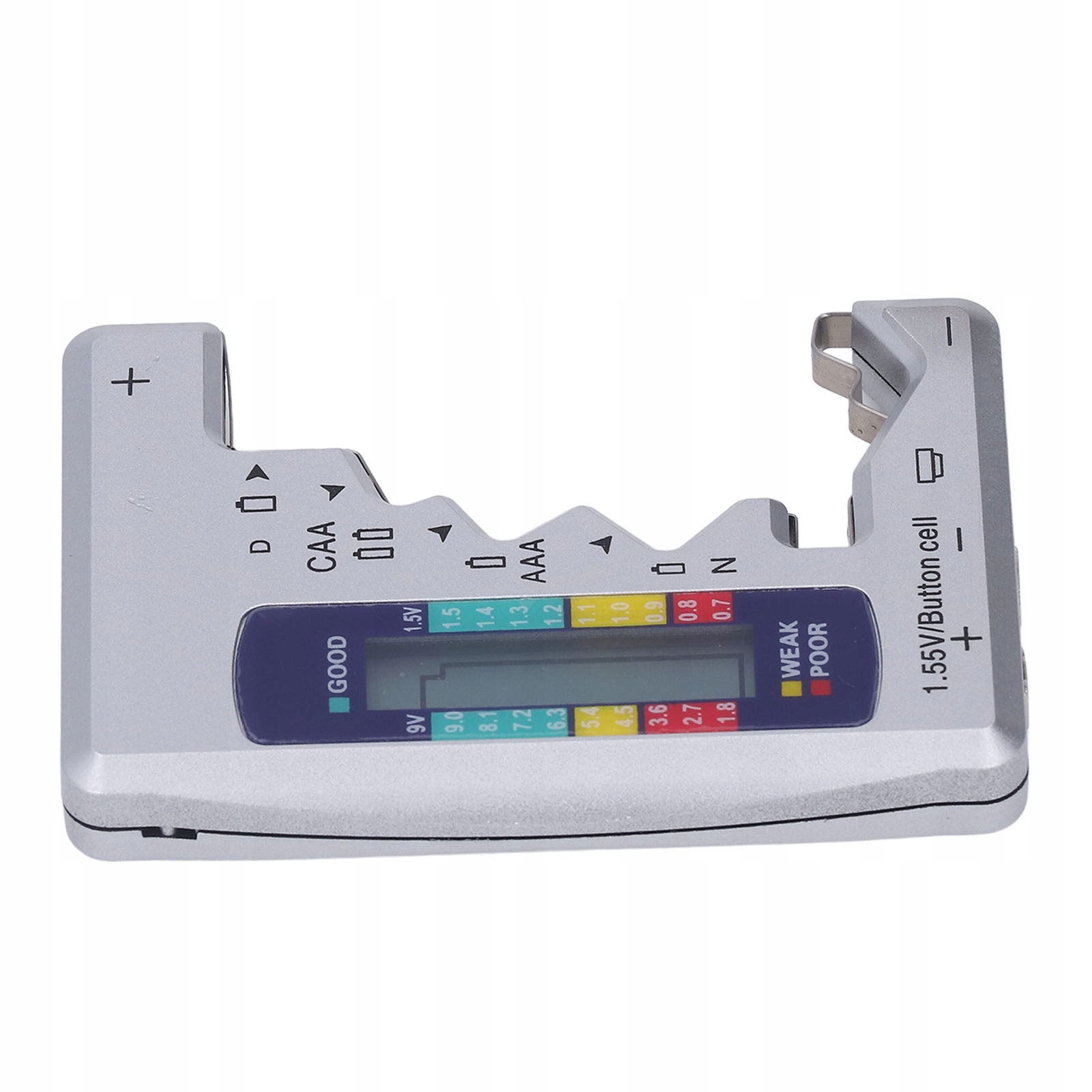 Цифровий тестер батареї ABS РК-екран Кнопка тестер батареї для вимірювання 1,5 В 9 В, сріблястий