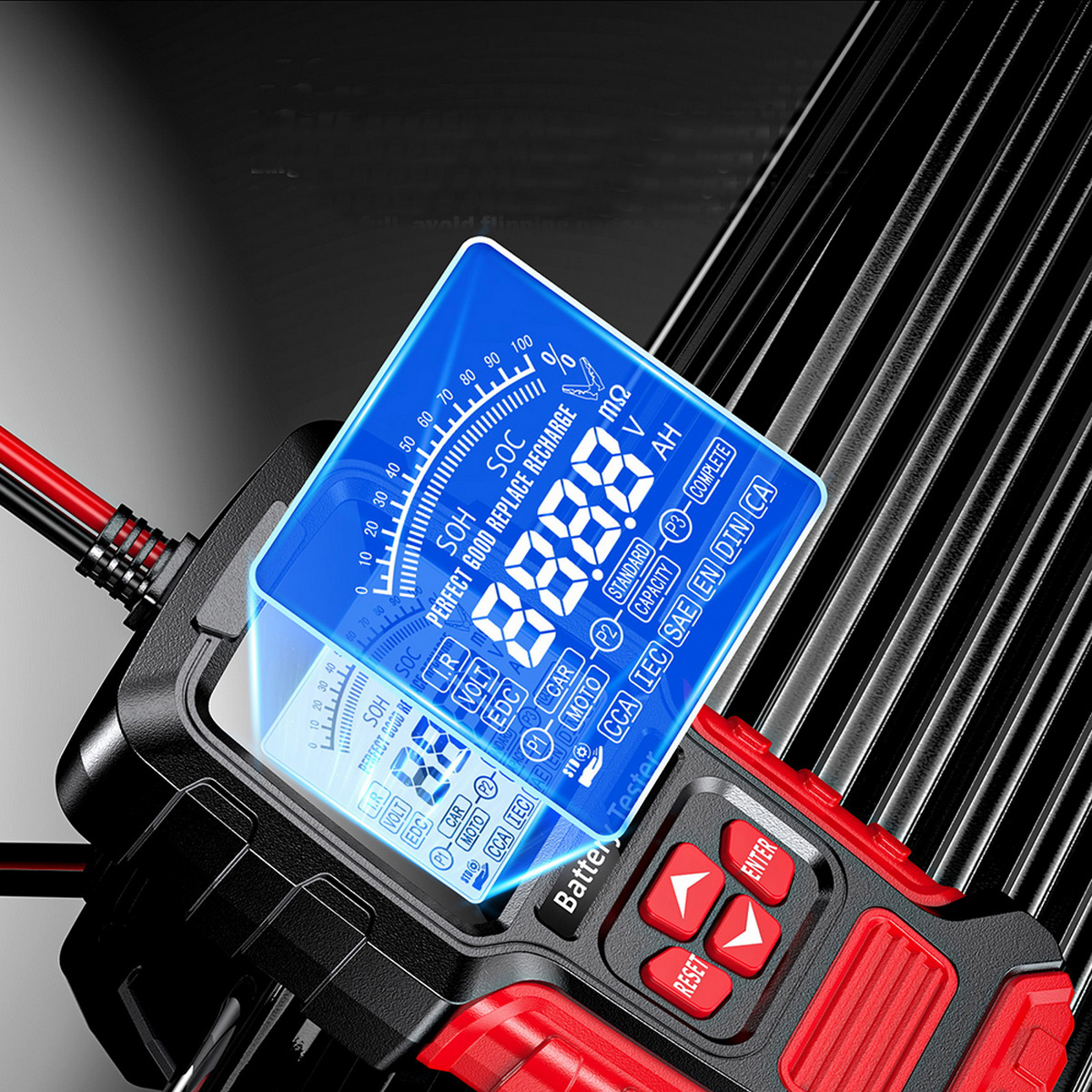 Ідеально підходить для діагностики акумулятора в мотоциклах, пасажирських автомобілях, вантажівках та інженерних транспортних засобах. Підтримує всі типи акумуляторів 12 В та 24 В кислоти (не тестують літієві батареї). "