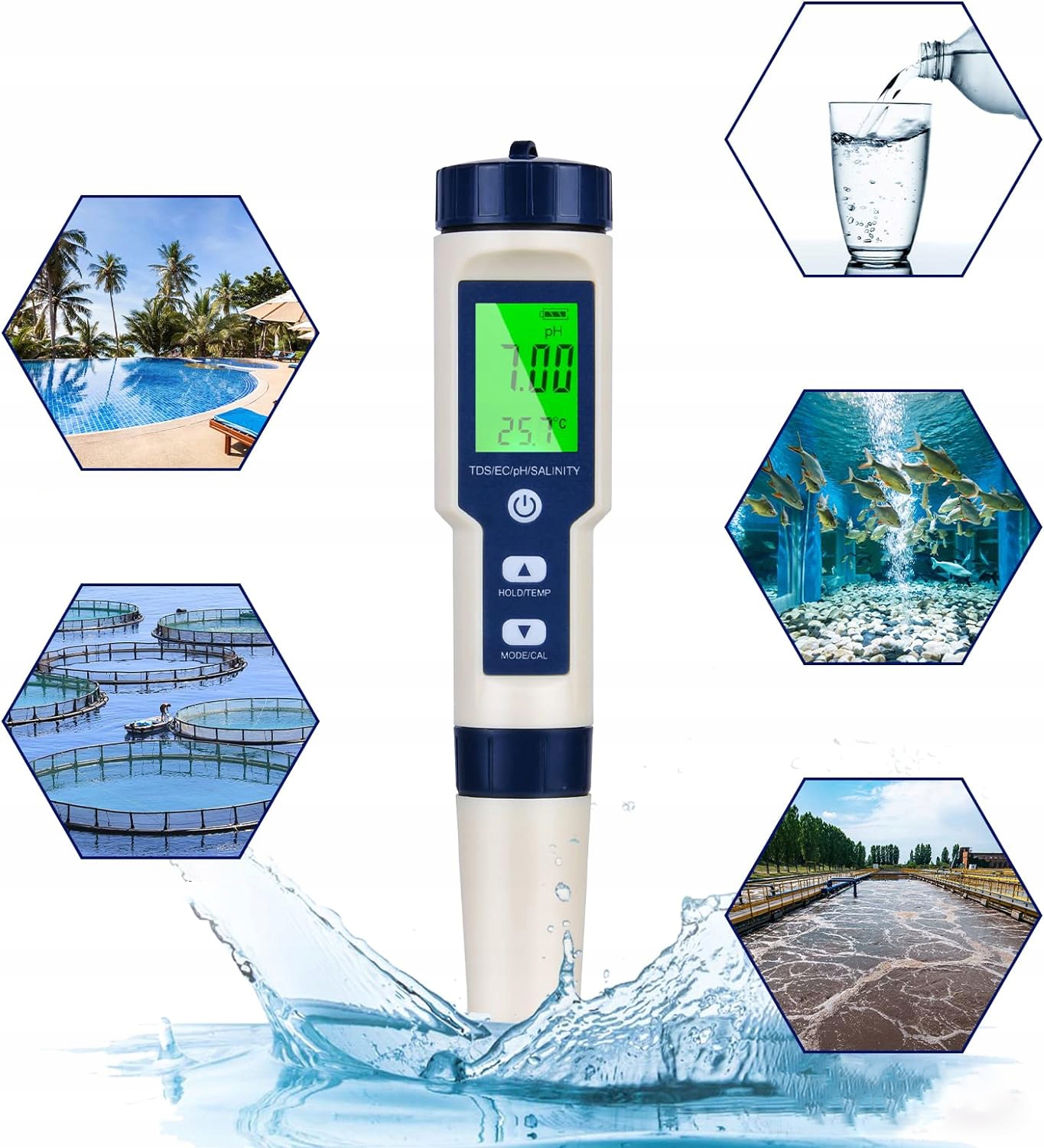1. Функція 5 в 1, яка може бути використана для випробування pH / TDS / EC / Солоності / Температура води для забезпечення безпеки питної води.