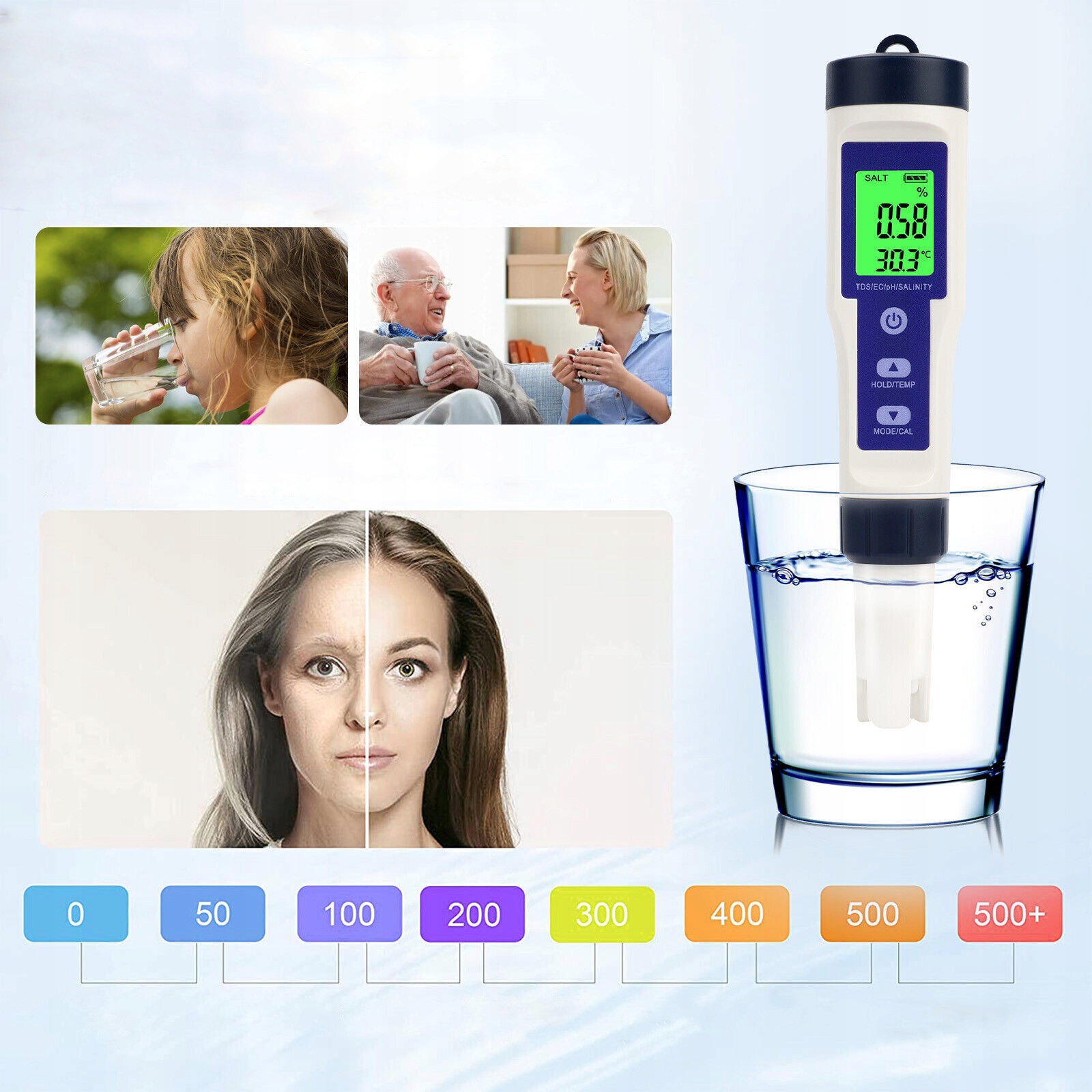 Цифровий тестер якості води, висока точність 5in1, функція вмісту солі