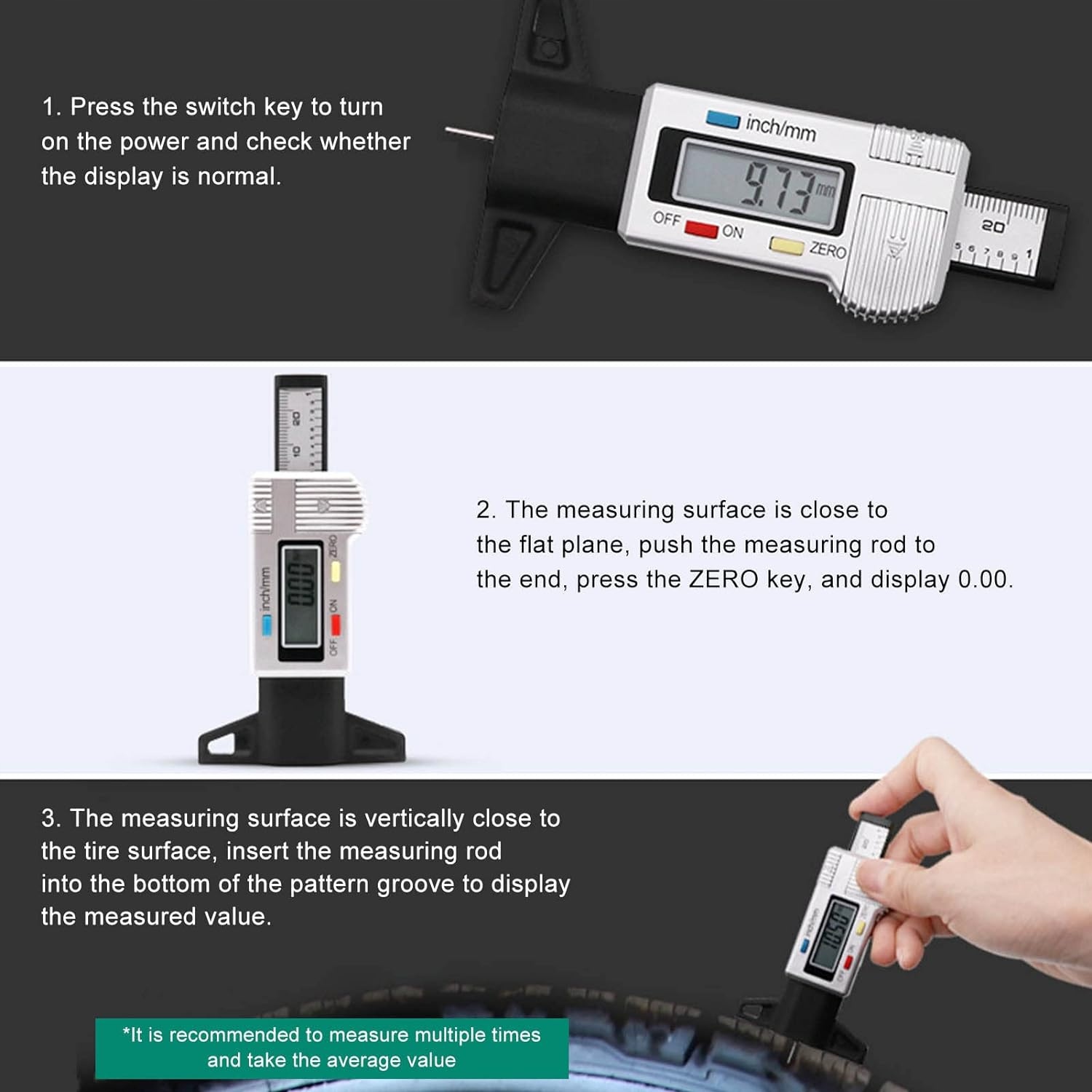ТОЧНЕ ЗЧИТУВАННЯ Індикатор глибини протектора шини оснащений великим дисплеєм, зчитування інтуїтивно зрозуміле, точне і не викликає збоїв. МЕТАЛЕВИЙ ЗОНД Цифровий вимірювач глибини протектора шин розроблено з металевим зондом, який зручний для вимірювання та надійний за якістю. УНІВЕРСАЛЬНИЙ Універсальний тестер протектора шин для вантажівок, мотоциклів, легкових і будь-яких легкових автомобілів для визначення рівня зносу шин і забезпечення безпеки водіння. МАЛЕНЬКИЙ І ПОРТАТИВНИЙ Компактний вимірювач глибини протектора, легкий, легко поміщається в сумці для інструментів, портативний і простий у використанні будь-де та будь-коли. МАТЕРІАЛ ВИСОКОЇ ЯКОСТІ Контролер протектора шини виготовлений з високоякісного матеріалу ABS, який є зносостійким, твердим і стійким до падінь.
