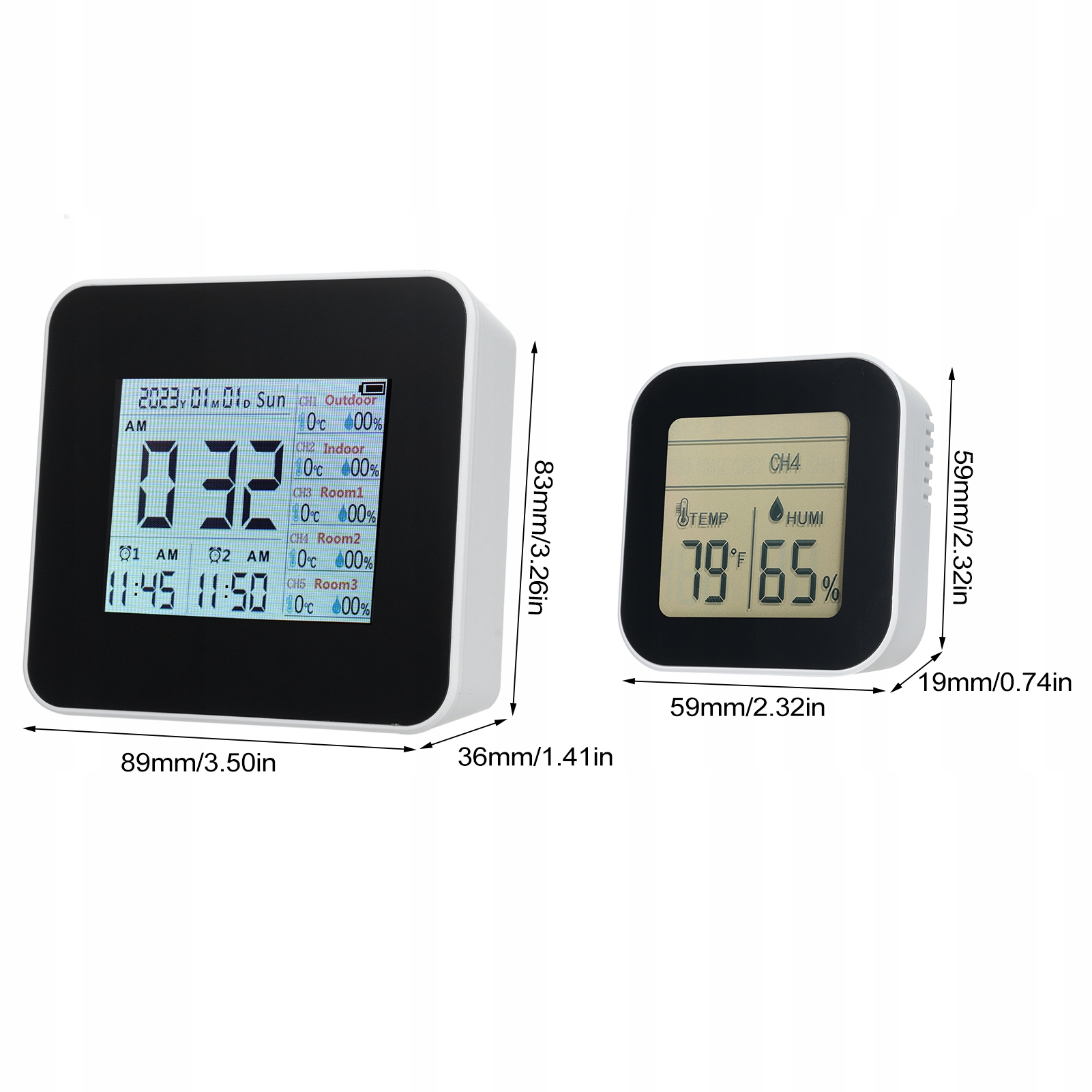 - Розмір термогігрометра: 89 * 83 * 36 мм / 3,50 * 3,26 * 1,41 дюйма