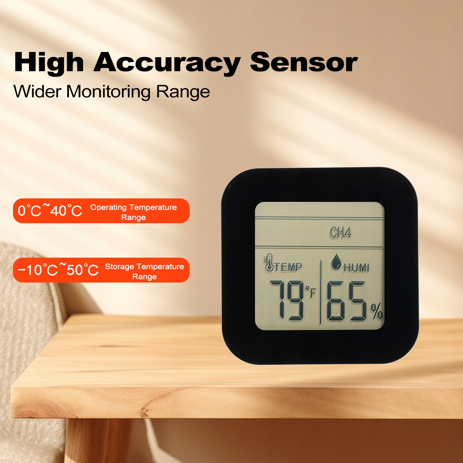 3. Широкий діапазон вимірювань: Вимірювач температури та вологості має високопродуктивний датчик, діапазон вимірювання температури становить -4°F ~ 131°F (-20°C ~ 55°C), похибка вимірювання температури становить ± 1°C; Діапазон вимірювання вологості становить 1% ~ 99% відносної вологості, похибка вимірювання вологості становить ± 3% відносної вологості.