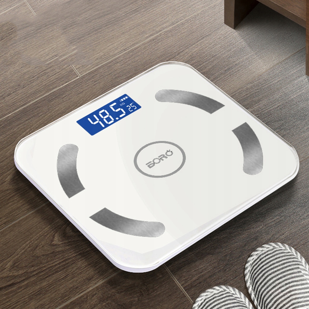 🌈o Інтелектуальна вага для повсякденного використання. Виготовлений із загартованого скла та матеріалу електронних компонентів та забезпечує довше життя. Також простий дизайн форми робить його частиною прикраси вашого будинку. Великий розмір РК -дисплея повідомляє про інформацію про вагу та інформацію про акумулятор.