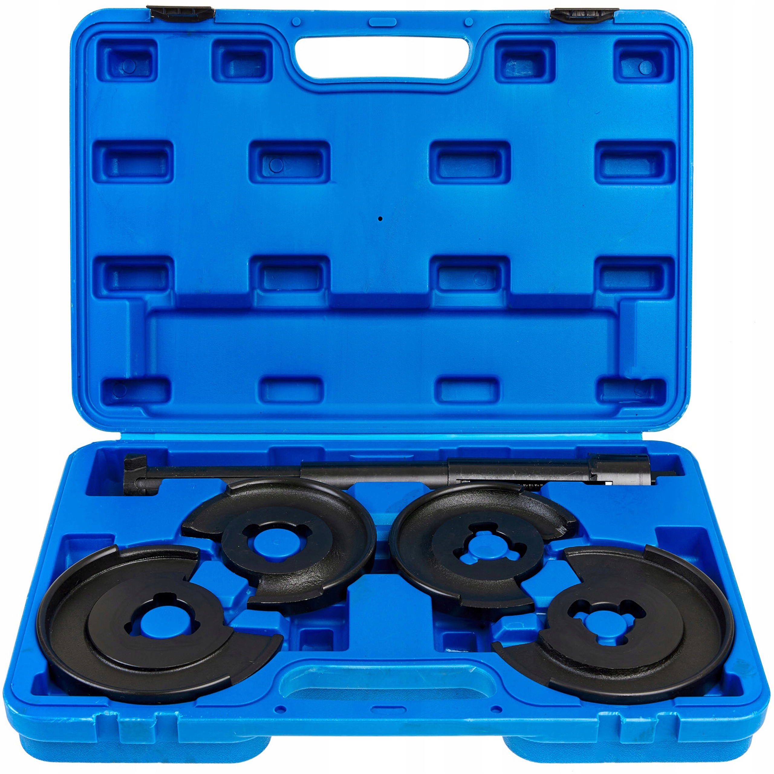 Пристрій, який використовується для демонтажу та встановлення пружини між хомутами важелів підвіски (задніми чи передніми). У комплект входять 2 пари змінних дисків з 3-х гачковою системою безпеки. Закручування екстрактора можливе за допомогою шестигранного ключа на 19 мм.