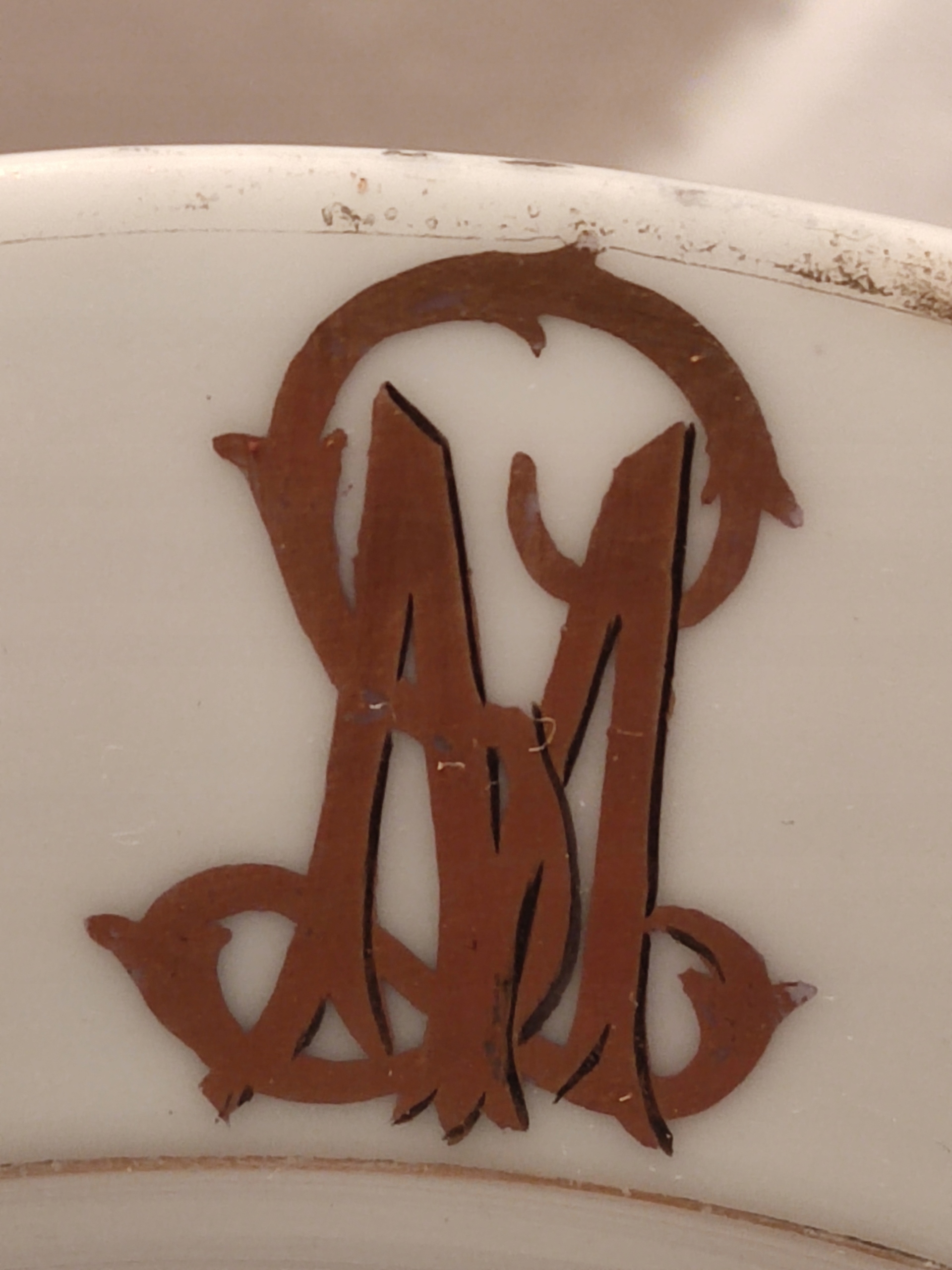 Цікава десертна тарілка з золотистою порцеляновою монограмою