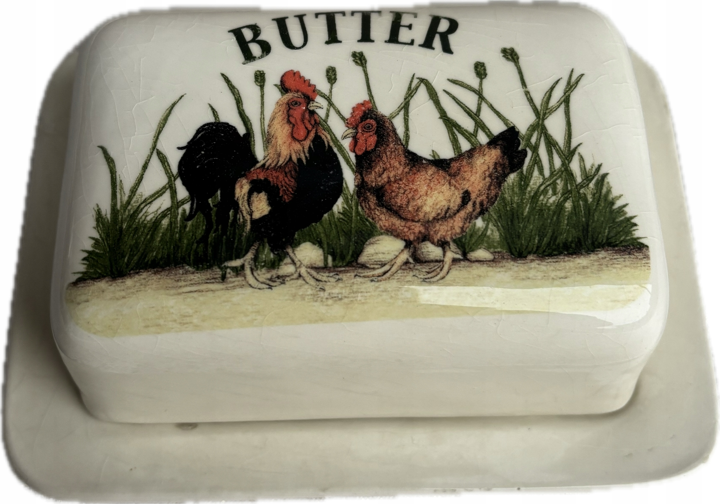Масленниця керамічна з написом BUTTER. Підпис Леонардо Стиль життя. Сліди користування, потертостей. Розміри; висота 7 х 15,5 х 11 см. Стан товару видно на прикріплених фото.