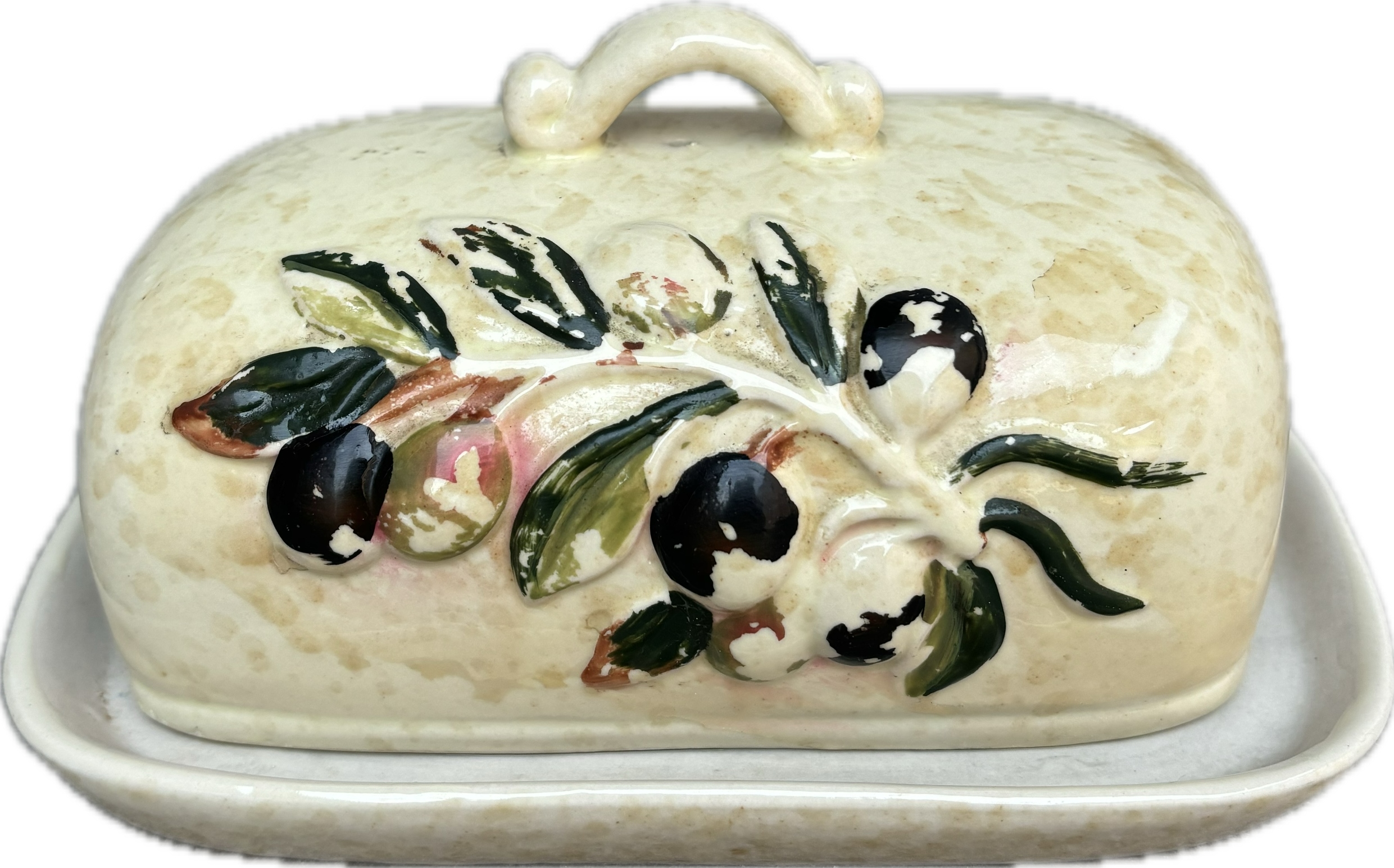 керамічне масло. Сліди використання, закриття. Витерта декоративна фарба. Розміри; Висота 9 x 17,5 х 11 см. Стан елемента, показаного на доданих фотографіях.