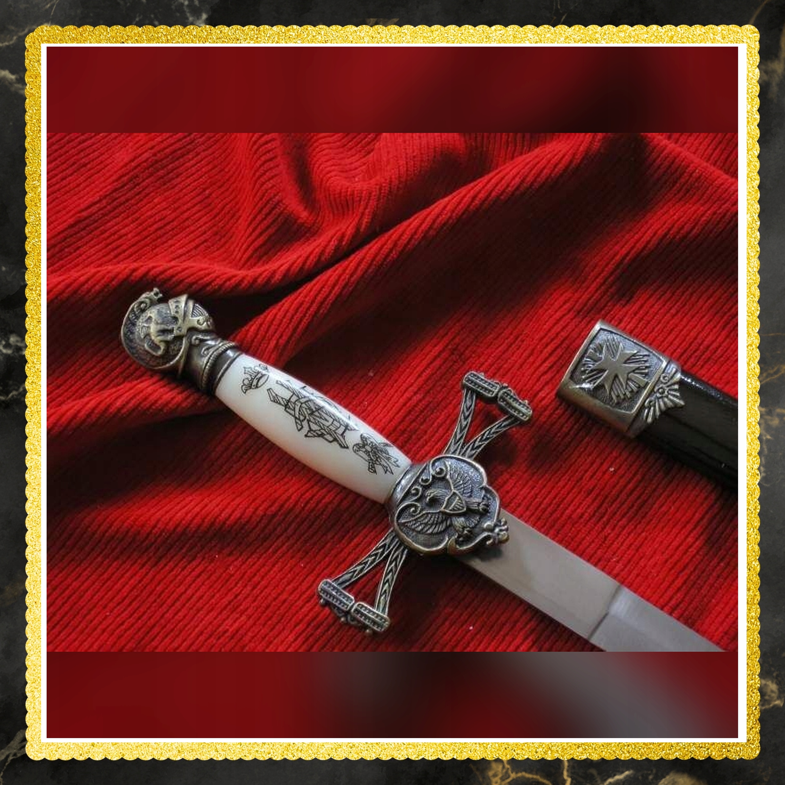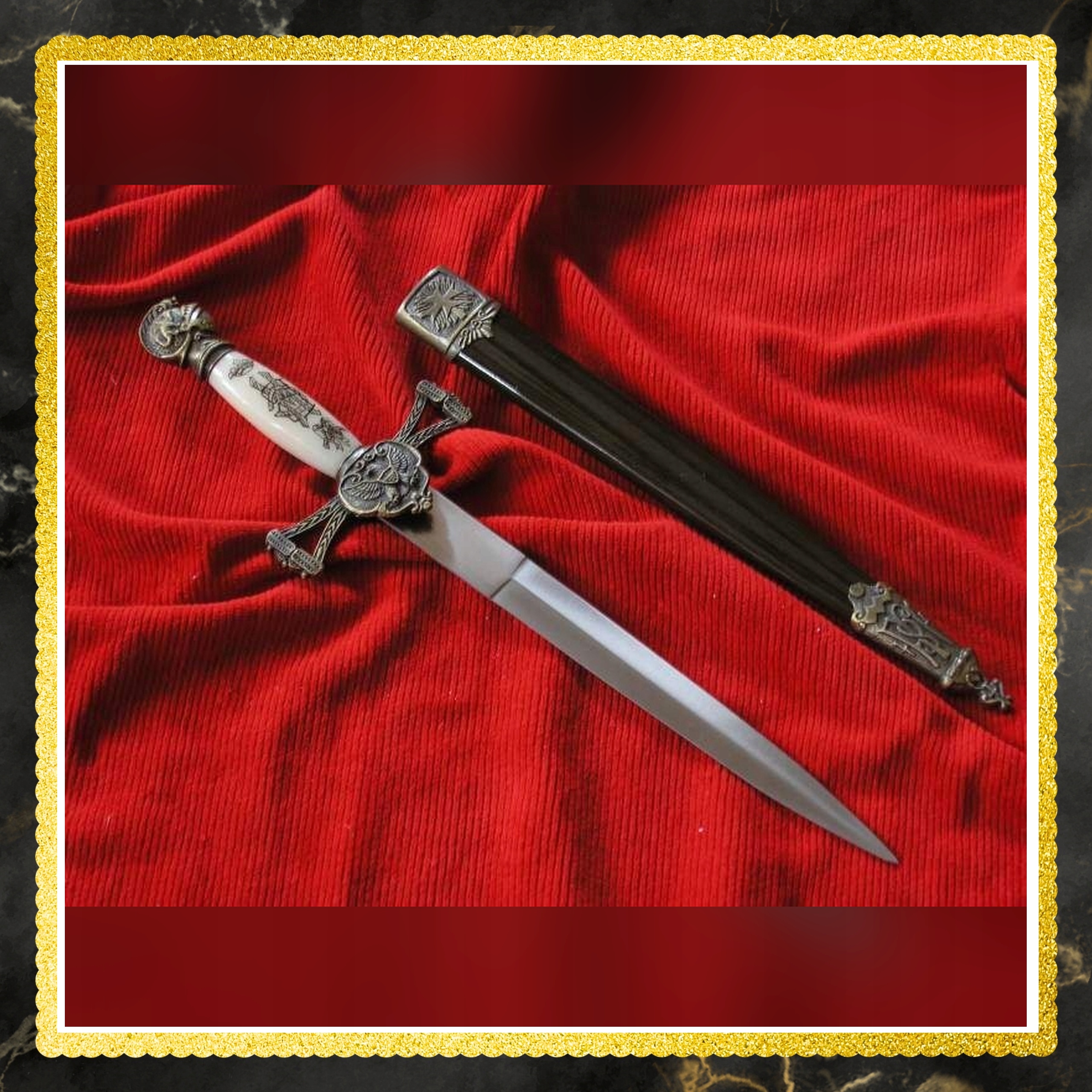 ❇ Закінчення цього кинджалу з піхвою - це не лише придбання товару, але й інвестиції в частину історії. Це можливість повсякденного спілкування з реплікою історичної зброї , яка передає нас у захоплюючі часи лицарів та благородства. Завдяки високій якості виготовлення та догляду за деталями, цей кинджал стане прикрасою будь -якої колекції або унікальним елементом дизайну інтер'єру. Його універсальність означає, що вона буде використовуватися як в руках любителів історії, так і людей, які шукають оригінальні домашні аксесуари. Інвестуйте в цей кинджал, щоб відчути дух історії і насолоджуватися красою ремесла щодня.