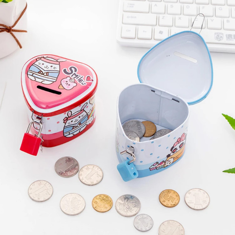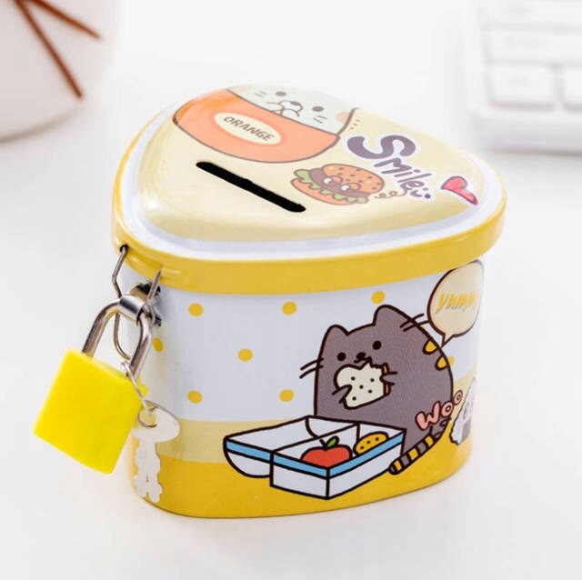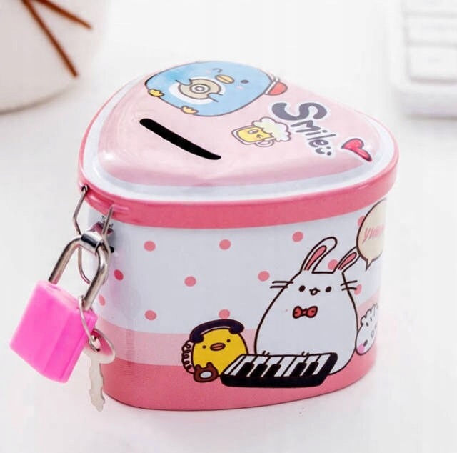Барвистий металевий скарбничок із закриттям замка буде ідеальним для зберігання заощаджень дитини.