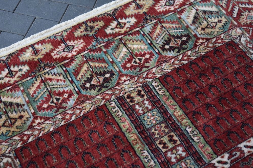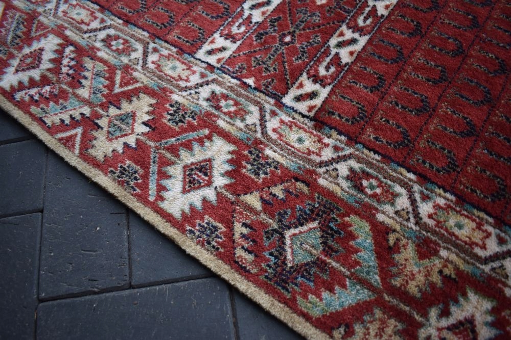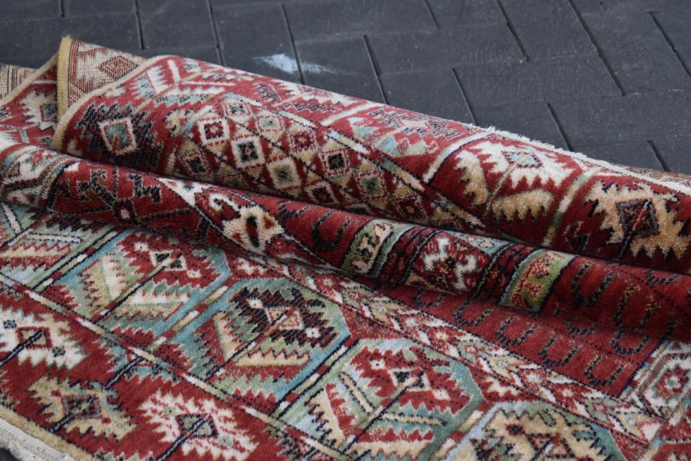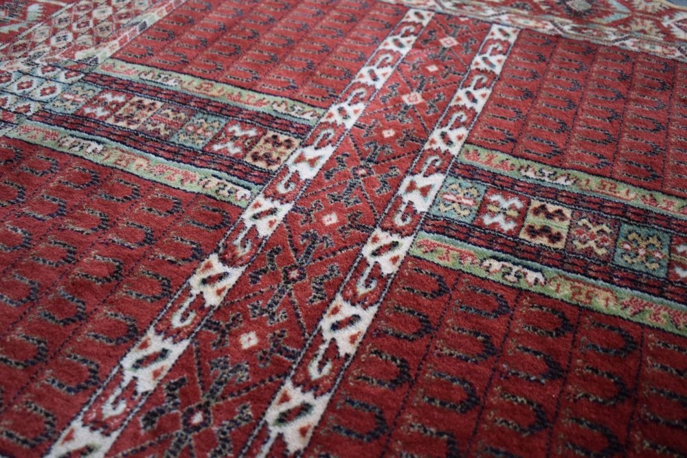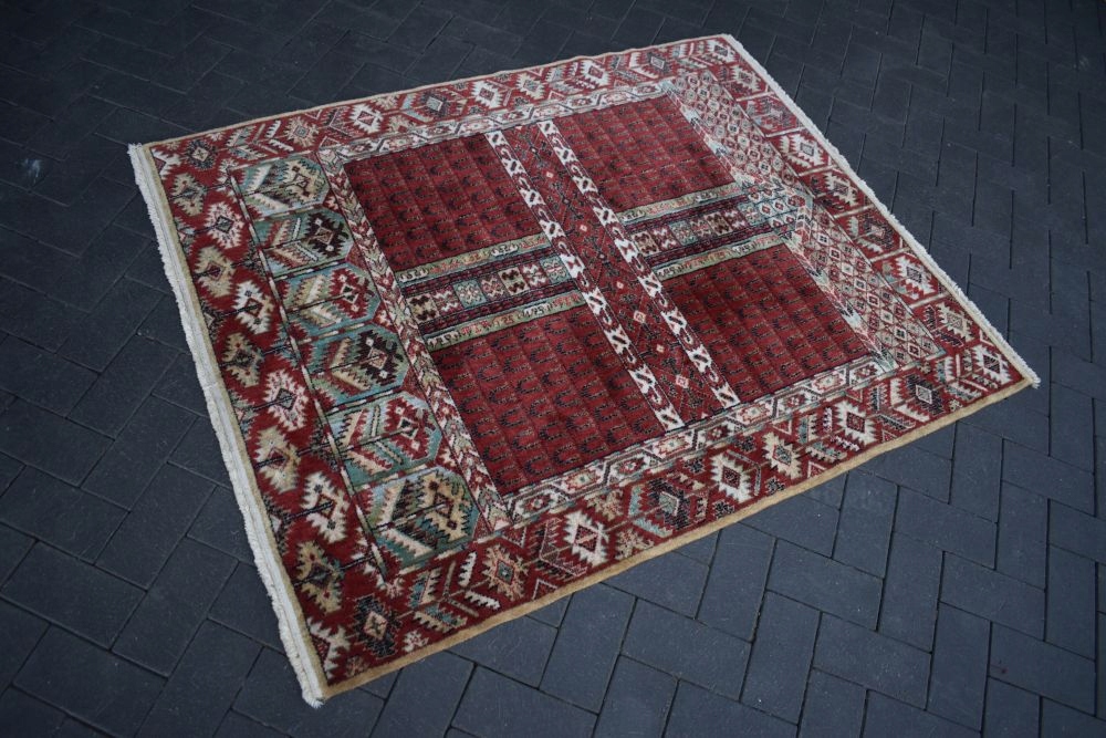 На наступному аукціоні я пропоную вам цікавий килим Durwan, виготовлений з вовни найвищої якості, машинного виробництва, з дизайном Turkmen Ensi.