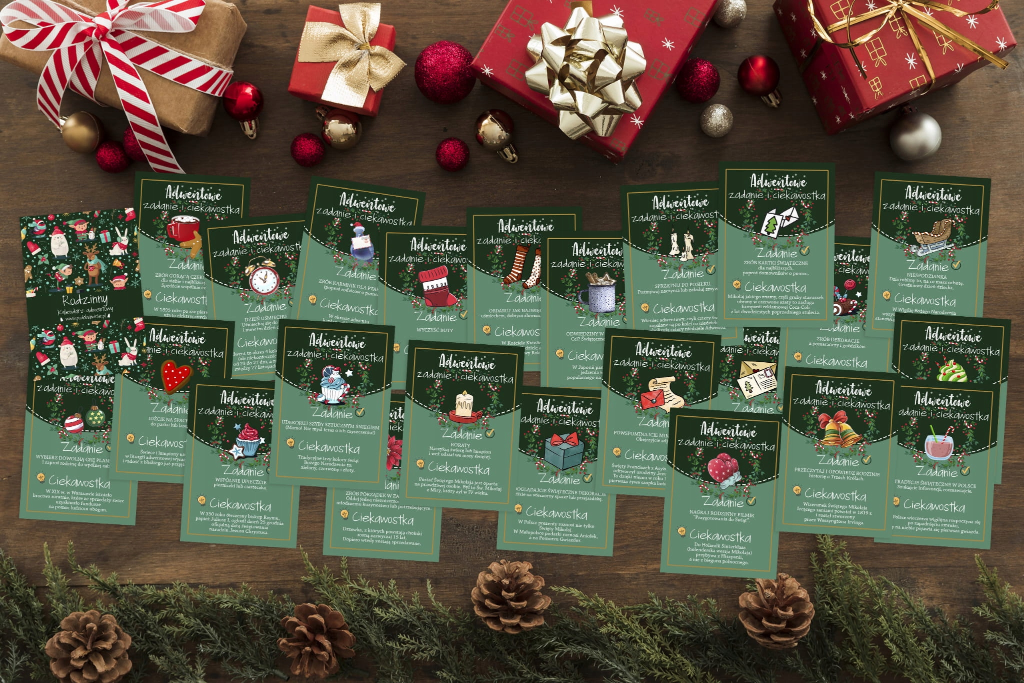Коли дитина дістає шоколадку, вона також має виконати завдання, наприклад, почистити взуття, допомогти з домашніми справами або вивести батьків на прогулянку.❤️ Діти як виклики, вони люблять відчувати себе потрібними та корисними. Крім того, кожна картка містить цікавий факт, який є інформативним і гарним доповненням до розваг у Адвенті.
