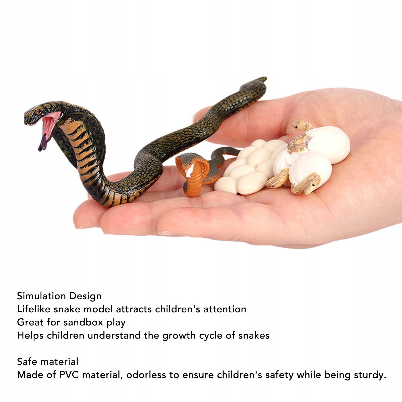 1. Реалістичний дизайн: іграшки життєвого циклу Snake можуть похвалитися реалістичною моделлю змії з моделюванням дизайну, ідеально підходячи для захоплюючих моделей дикої природи та викликають цікавість дикої природи. Освітні ігри з пісочниці: Ідеально для гри в пісочниці, ці іграшки допомагають дітям зрозуміти цикл зростання змії, збільшуючи знання про стадії розвитку тварин. Культивує усвідомлення: ці іграшки у високому циклі заохочують дітей грати відповідальності, підтримуючи почуття обізнаності про захист тварин з воскреслих років. Безпечна речовина: Виготовлений з невеликого матеріалу ПВХ, без запаху дизайн життєвого циклу забезпечує безпеку дітей, забезпечуючи при цьому тверде використання Duwotrwae. Навчання та розвиток: як ефективні інструменти для навчання дітей, ці іграшки в стані зростання змії стимулюють інтерес та сприяють інтелектуальному розвитку за допомогою взаємодій.