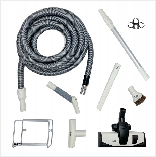 Всмоктувальний блок центральної системи пилососа з циклонною фільтрацією та додатковою фільтруючою вставкою з поліестеру. У набір також входить всмоктувальний шланг довжиною 9 м і аксесуари для чищення. Набір аксесуарів для прибирання: Металева підвіска для всмоктувального шланга. Тримач для аксесуарів для чищення. Щітки: для пилососіння меблів, для чищення щілин, для килимів і килимів, двофункціональна щітка для твердих підлог і килимів. Телескопічна трубка алюмінієвий подовжувач.