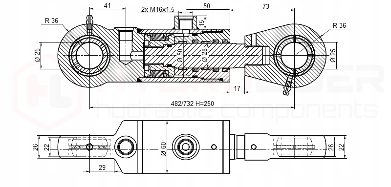 ГІДРОЦИЛІНД ДВОЇ ДІЇ