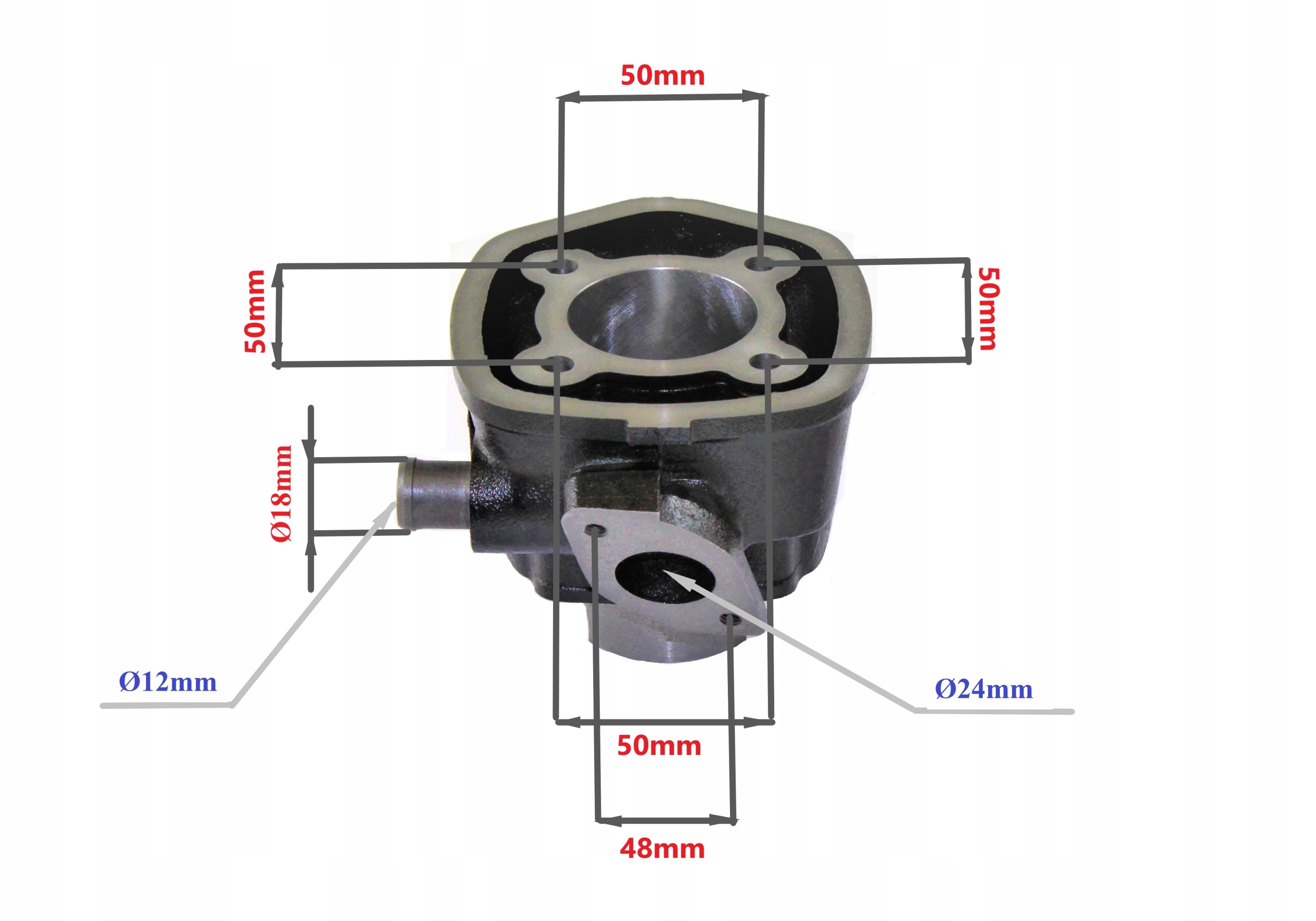 Ціліндр чавунний діаметром 47 мм, марки POWER FORCE, упакований в оригінальна коробка. Комплект підходить для двигунів рідинного охолодження на двигуні Minarelli Horizontal (горизонтальний циліндр)