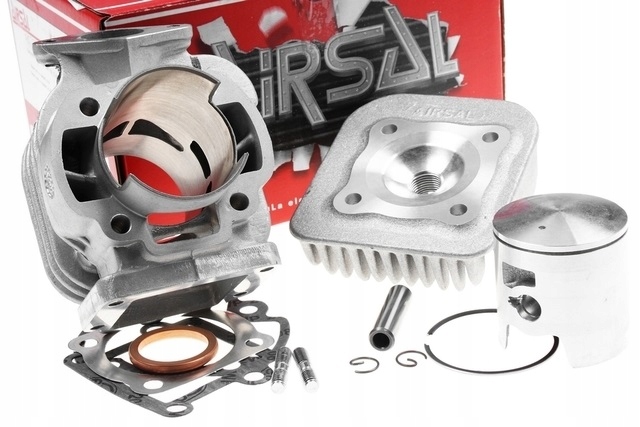 Cylinder Kit Airsal T6 70cc. Алюмінієвий циліндр рівня Mid Race - рівень між звичайним спортом і гонками 70 куб. Розділений вихлопний канал - як у високопродуктивних циліндрів Malossi MHR Racing або Hebo Manston Racing. Комплект Airsal T6 поставляється з головкою, поршнем, кільцем, штифтом, штифтовими замками, прокладками, вихлопними шпильками. Ідеально працює з карбюраторами 19-21 мм, спортивними вихлопами та вихлопами середнього класу.