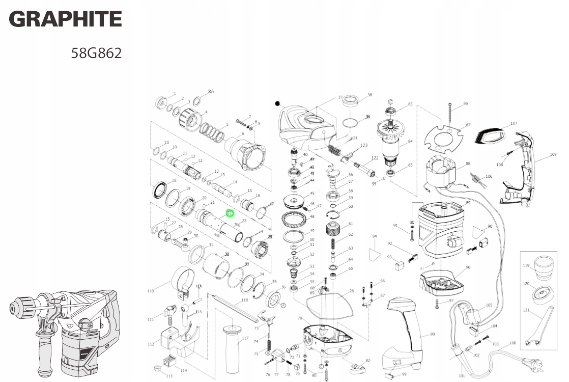 - 100% оригінал, новий Циліндр для БУРИЛЬНОГО МОЛОТКА GRAPHITE 58G862