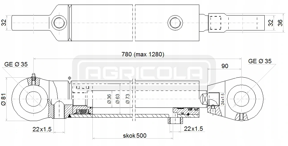 ЦИЛІНДР ГІДР. 63/36/500 U35 L: 780 ГІДРОЛІДЕР