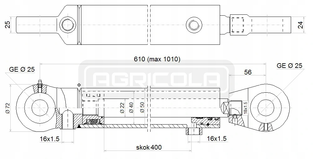 ЦИЛІНДР ГІДРОЦИЛІНДР 2-STR 40/22/400 ХОД 400мм L:610 ГІДРОЛІДЕР
