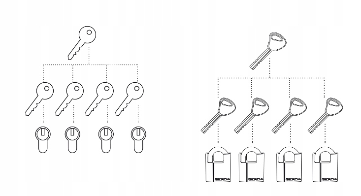 ДРУГИЙ, КОМФОРТНИЙ!Наш досвід і бажання Створення дружніх продуктів для наших клієнтів дозволяє адаптувати кожну систему GERDA Master Key відповідно до ваших індивідуальних потреб. Ми забезпечимо зручне розташування замків і циліндрів, щоб мінімізувати кількість ключів у вашій кишені навіть до ОДНОГО. Система Master Key System GERDA дозволяє одним ключем відкривати багато вставок, наприклад: ворота - гараж - сходи - підвал - квартира. Його можна використовувати всюди, як в індивідуальних будинках, житлових комплексах, так і на підприємствах - в офісних будівлях, на складах, в торгових точках.
