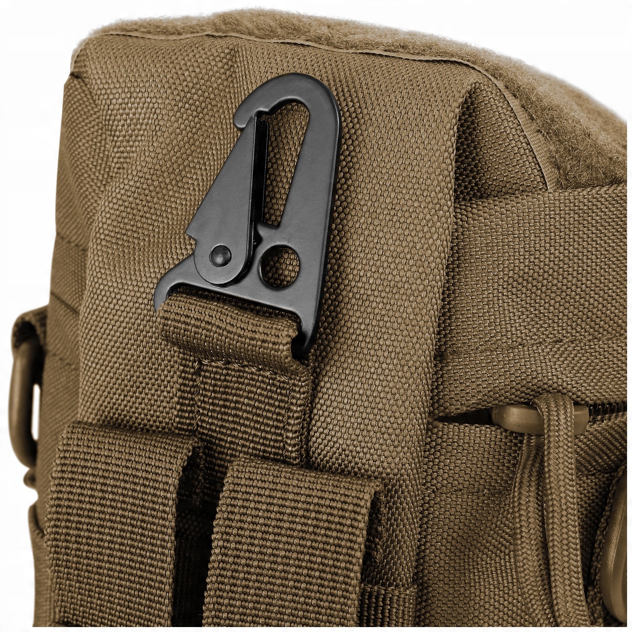 Сумка оснащена Molle System Tapes , що дозволяє зафіксувати обладнання в будь -якій конфігурації. На задній панелі є жорсткі стрічки, кріплені металевими знімками.
