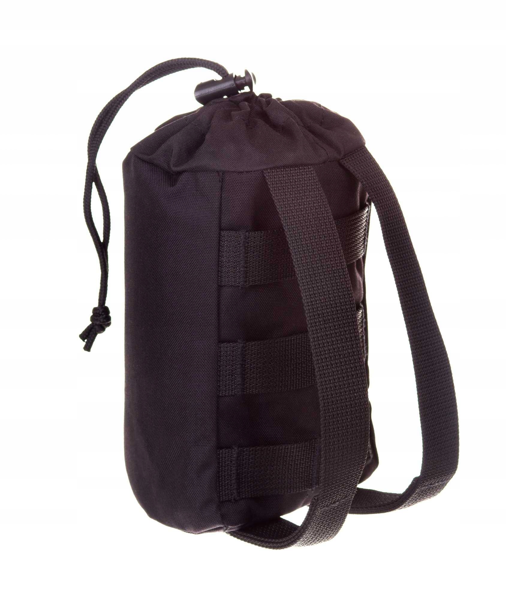 Чорна кишенькова кишенькова кишенькова кишенька зручна кишеня для пляшки з водоймами. Кишеня виготовлена з Кордури, з поліестером зверху, вміщує 1,5 л пляшки води. Встановлений на рюкзак або інше обладнання з друзями/мольними стрічками. У кишені є дренажний отвір.