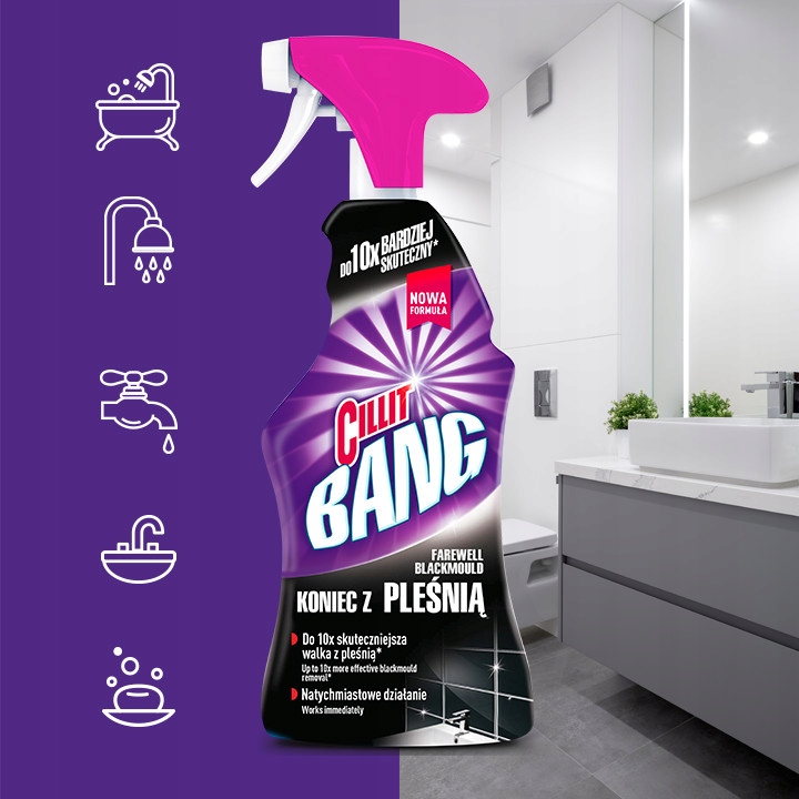 - 1 x Cillit Bang No More Mold 750 ml - надійний спрей для чищення ванної та кухні