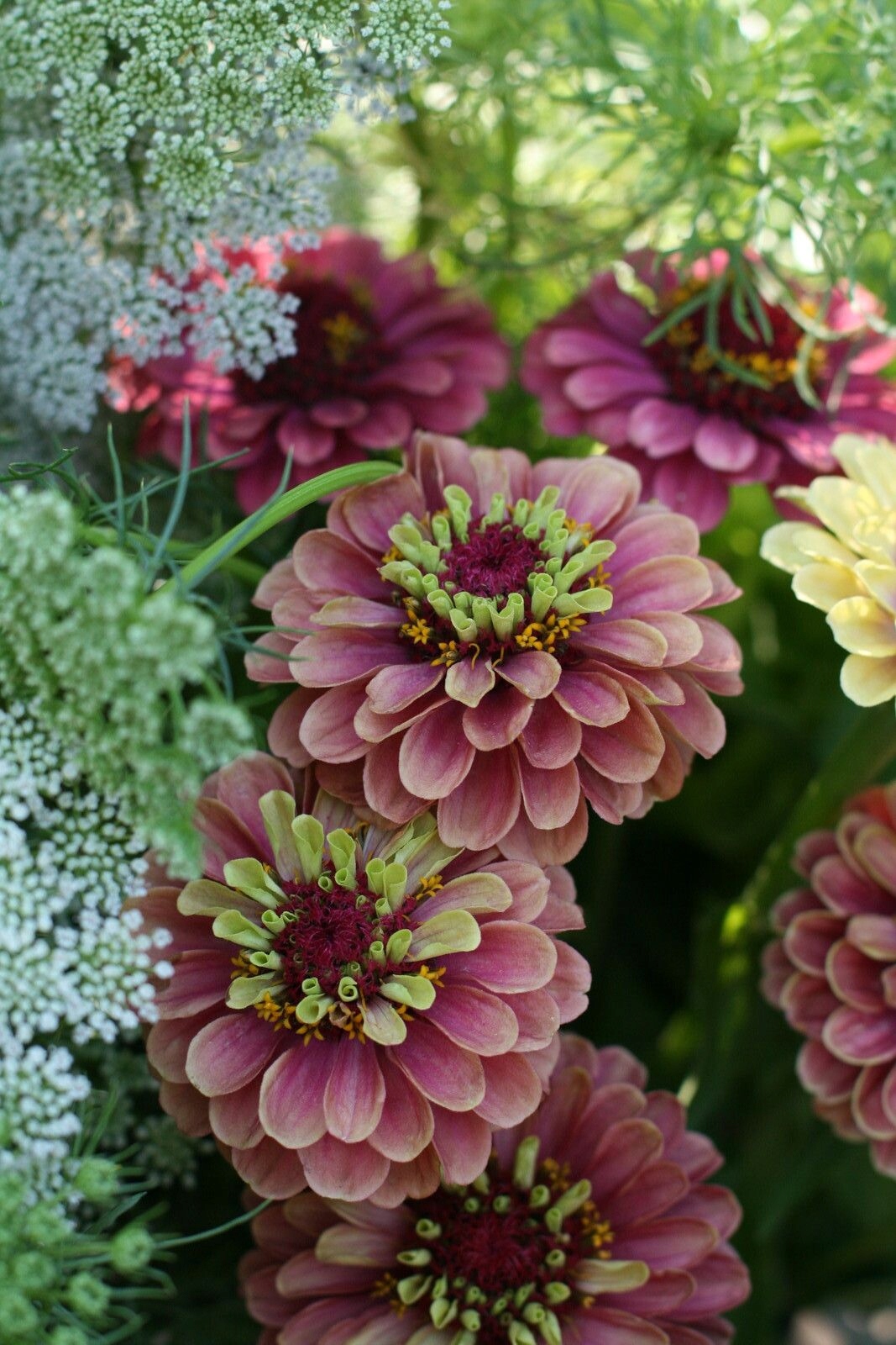 Zinnia elegans "Queen Lime Red" - це привабливий сорт благородної цинії, який вирізняється напівмахровими та повними квітами з характерним двоколірним відтінком. Центр квітів має світло-саймовий відтінок, який плавно переходить у червоно-бордовий край пелюсток, створюючи ледь помітне відтінення та багатовимірний ефект.