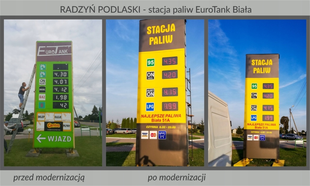 Як виробник світлової реклами, ми завершили десятки нових проектів та ремонтів цінових пілонів по всій Польщі. Завдяки цьому ми можемо проаналізувати кожен проект окремо та запропонувати рішення відповідно до ваших потреб.