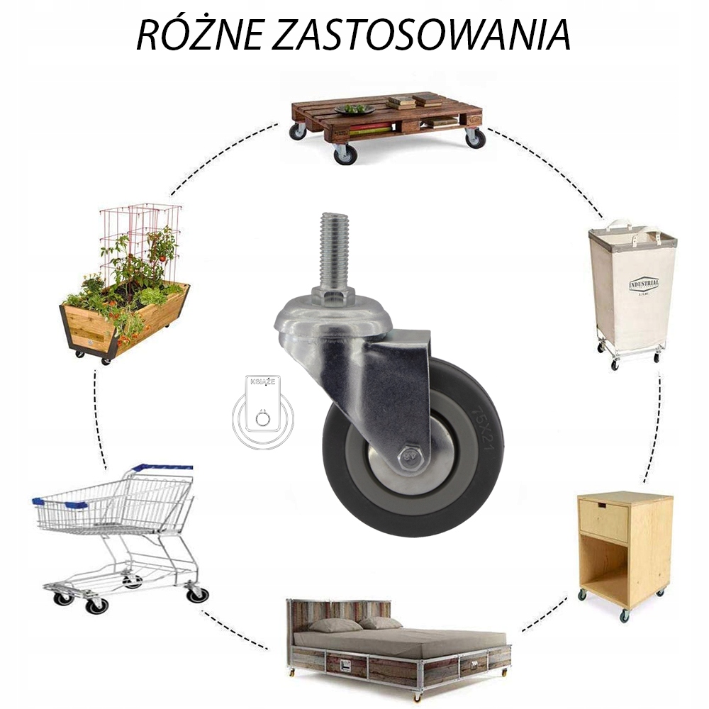 - КОЛЕСО складається з поліпропіленової втулки та немаркої гумової шини, з підшипником ковзання. Колеса мають міцність 70 кг на колесо. Вони повільно зношуються, стійкі до пошкоджень, поглинають удари та вібрацію. Вони обертаються на 360 градусів, полегшуючи маневрування меблями або коляскою. Вони плавно обертаються на твердих і гладких поверхнях, як-от бетон, з дуже невеликим тертям.