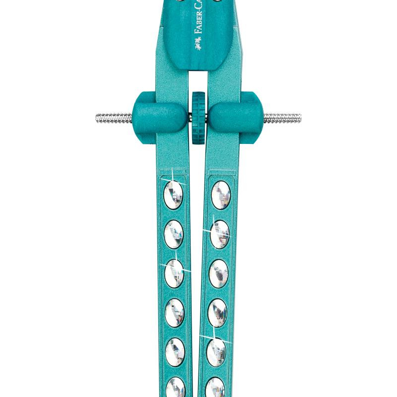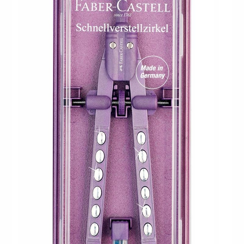 Компас Faber-Castell із серії Factory Sparkle у 3 кольорах: рожевий, фіолетовий та бірюзовий. Ідеально підходить для учнів та студентів. Унікальний дизайн, привабливе поєднання кольорів і функціональність. Виріб оснащений простим механізмом регулювання за допомогою гвинта і центральної ручки. Надійна технологія, міцний механізм і нековзкі голки забезпечують точність і комфорт використання. Унікальний дизайн із характерною для цієї серії точковою зоною Grip. Максимальний діаметр кола становить приблизно 340 мм. У комплект входить контейнер із запасними графітовими стилусами. Поставляється в практичному пластиковому кейсі. Зроблено в Німеччині.