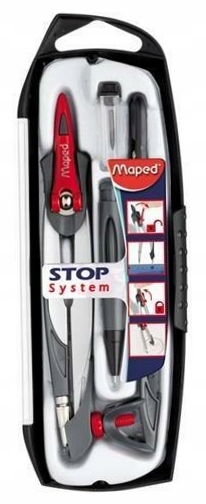 Компаси металеві з графітовим наконечником у пластиковому корпусі, комплект із 4 елементів; універсальний тримач для олівців, запасний грифель, точилка та механічний олівець для грифеля 0,5 мм. Запатентована система фіксації руки в певному положенні. Спеціальна кришка голки захищає від травм. Продажна одиниця 1 шт.
