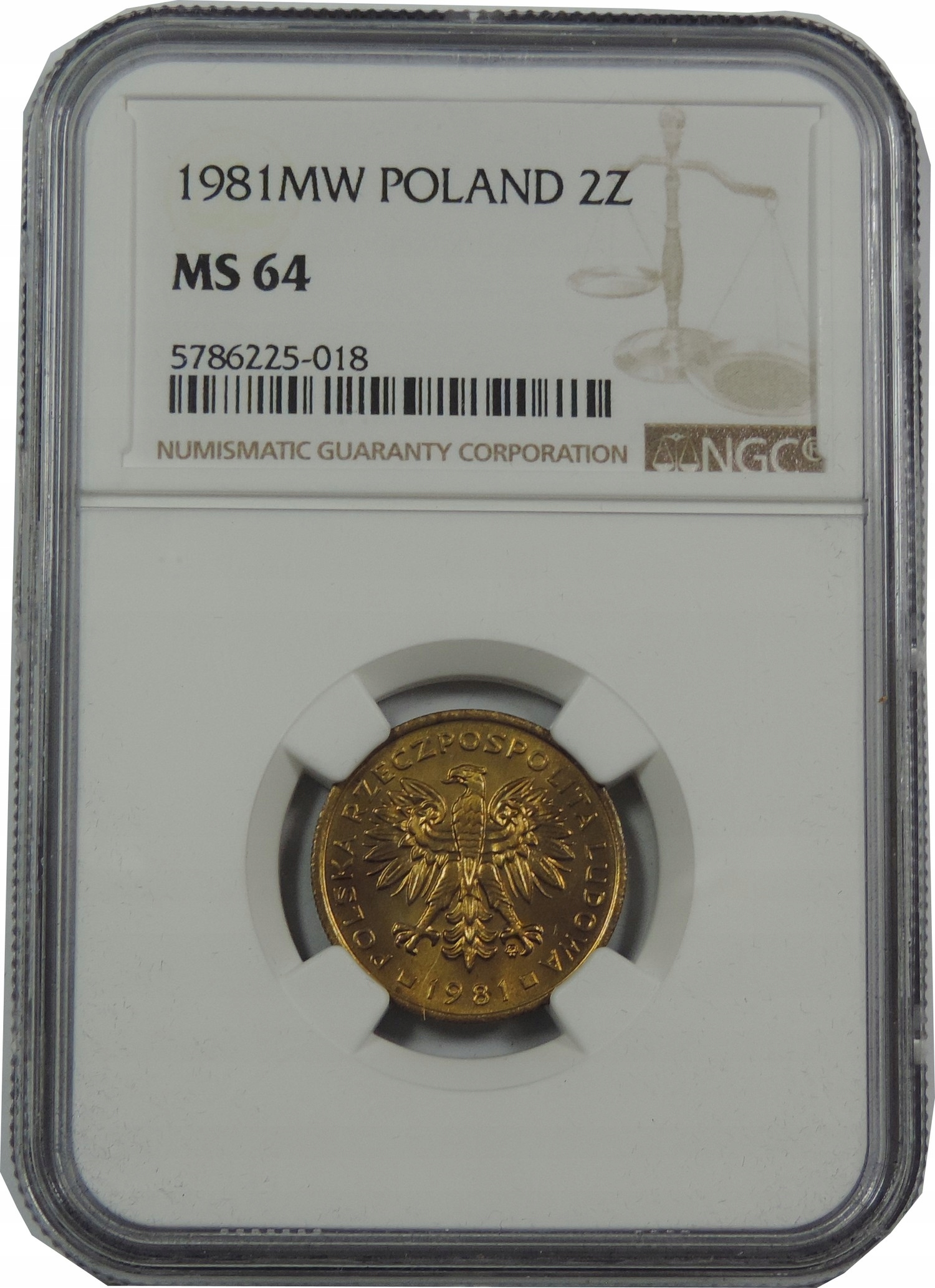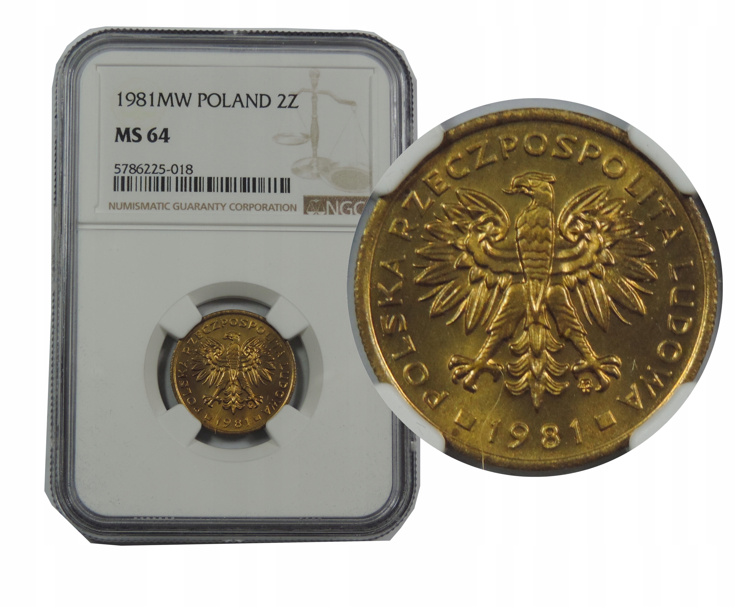 ЦИРКУЛЯЦІЙНА МОНЕТА PRL - 2 ЗОЛОТИХ 1981 - СТУДІЯ NGC - MS64 -OU705